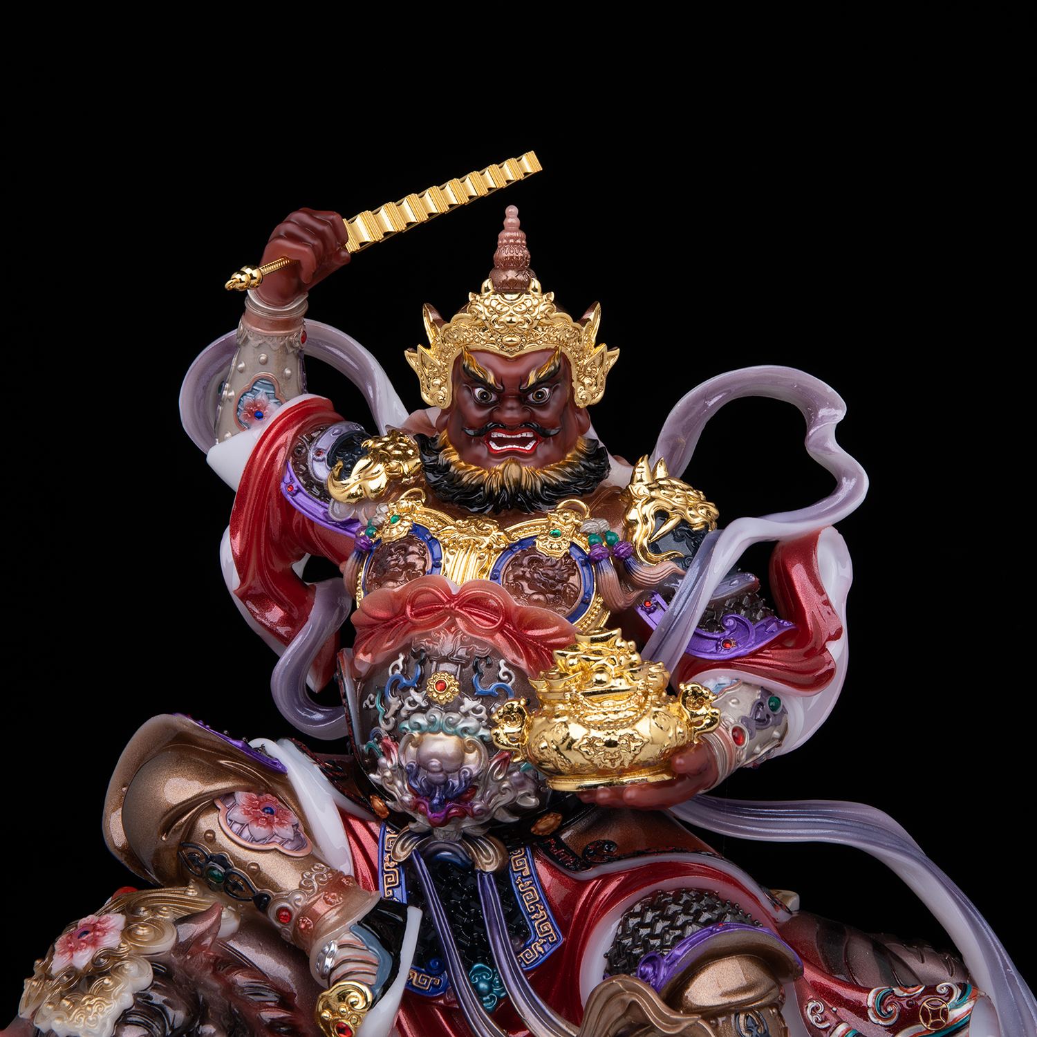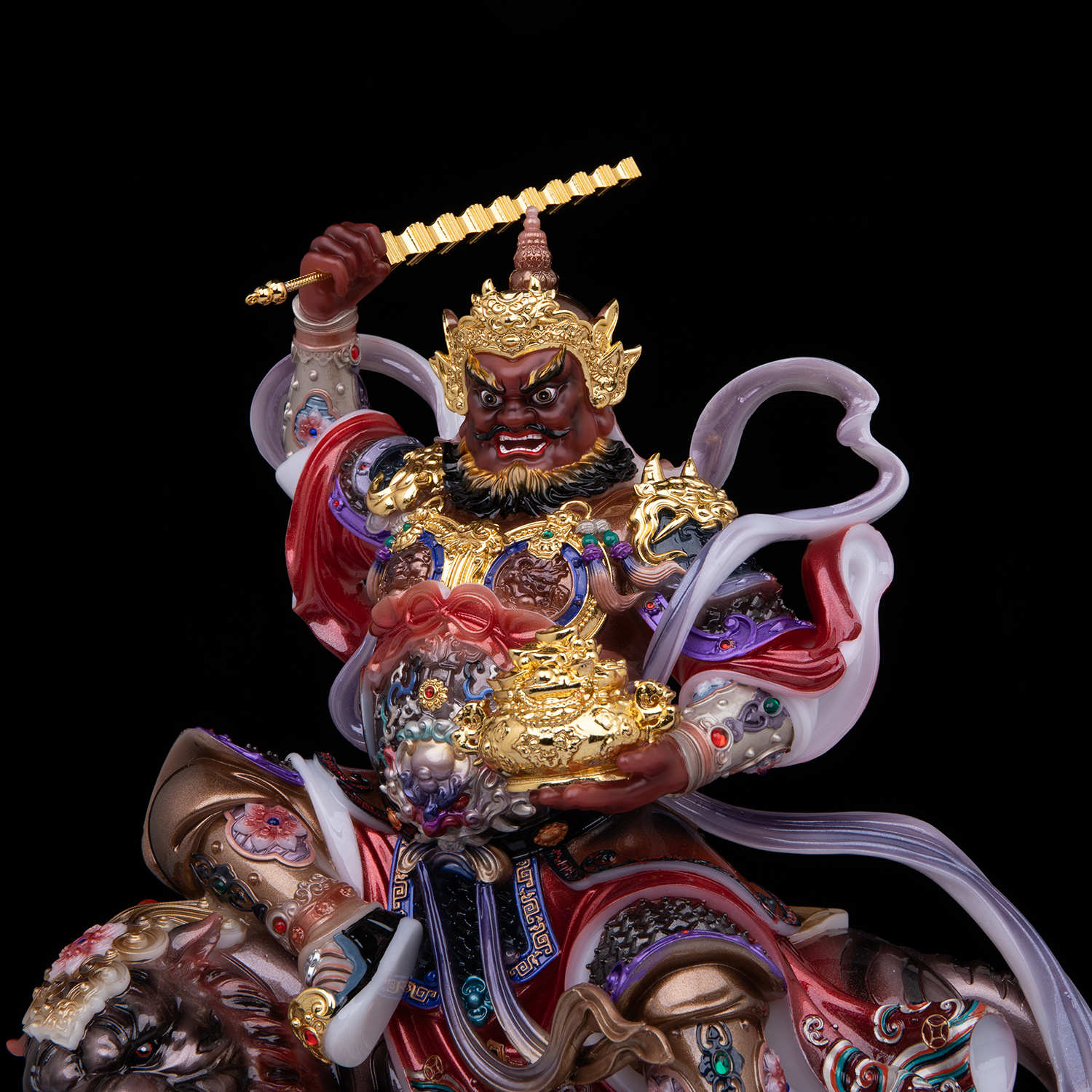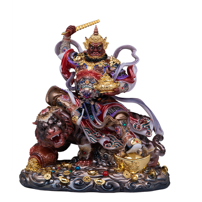康盛汉白玉鎏金彩绘赵公明神像武财神赵元帅赵玄坛像居家供奉摆件