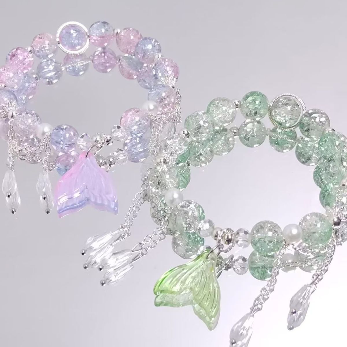 2025新款炫彩鱼尾串珠情侣手链甜美百搭超仙水晶闺蜜手串送女朋友