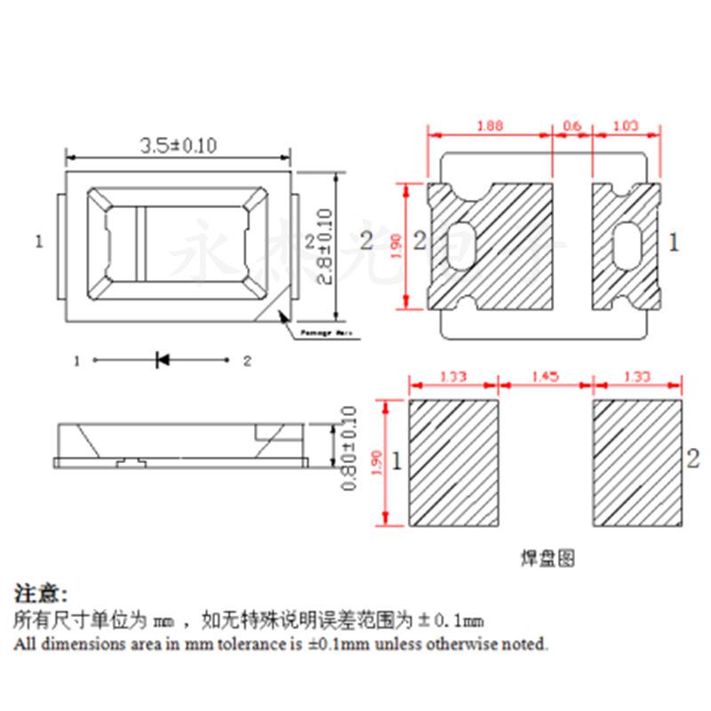 供应贴片LED超高亮2835红灯0.5W金线铜支架0.5W2835红色红光