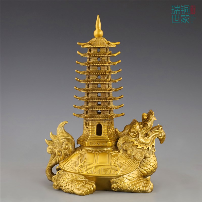 黄铜龙龟a托塔文昌塔九层9层十三层书房书桌办公室龟塔摆件装饰品