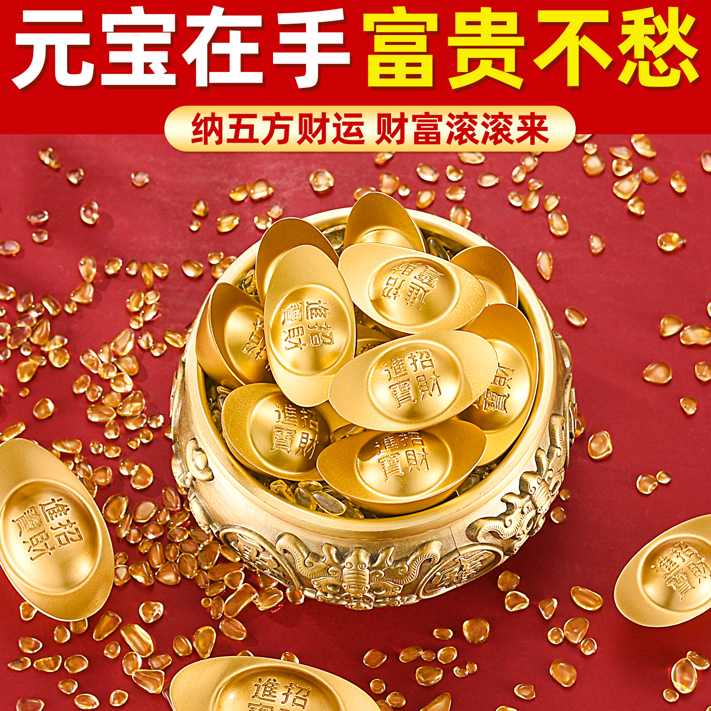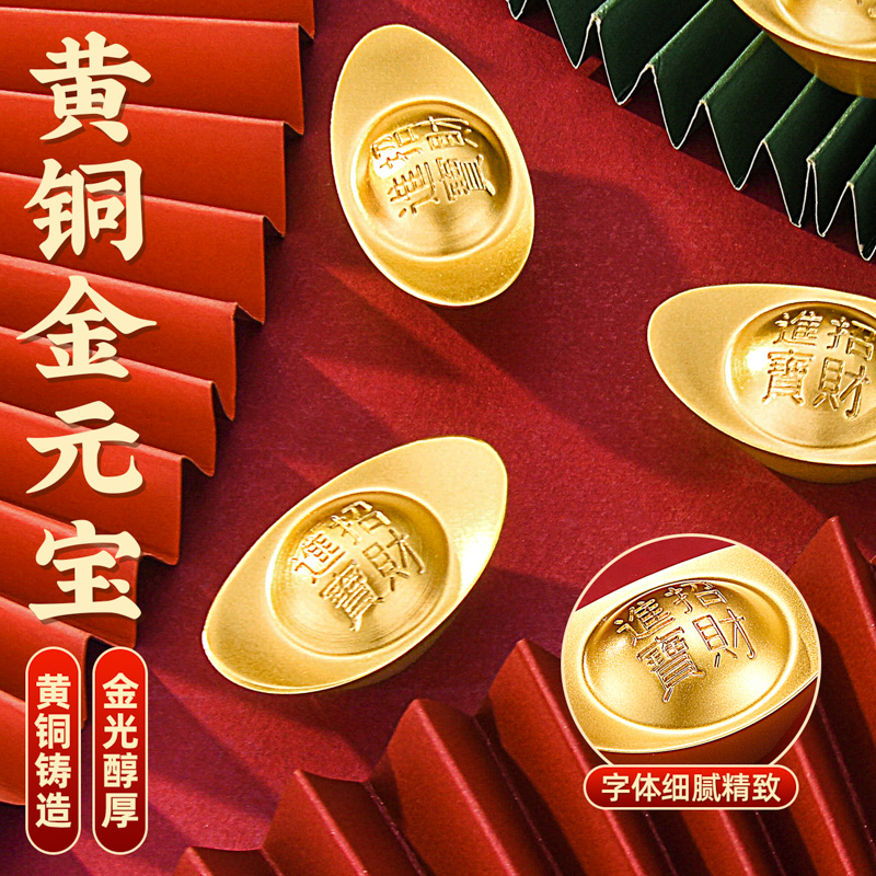 黄铜实心元宝摆件仿真金元宝招财一锭发财聚宝盆装饰乔迁开业礼品