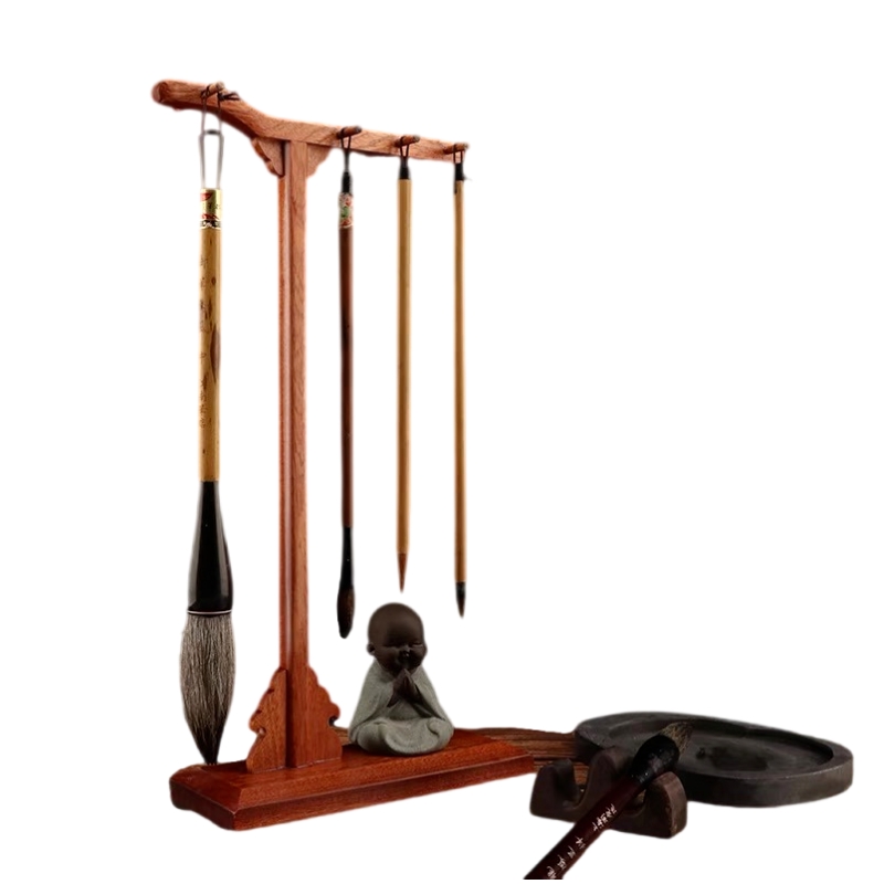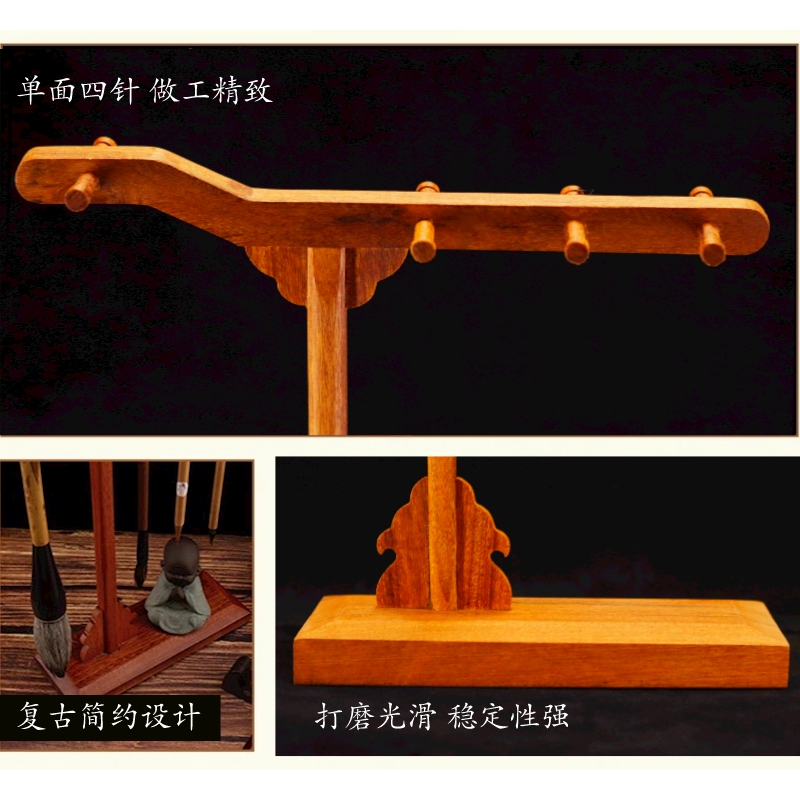复古高端实木四针八挂毛笔架文昌笔配套支架书房用品印尼茄木稳定