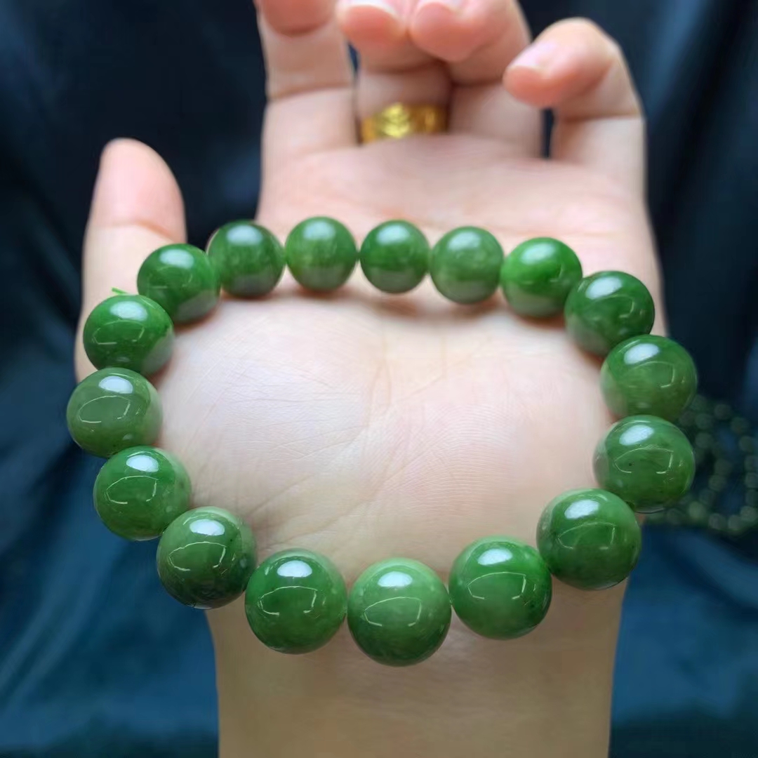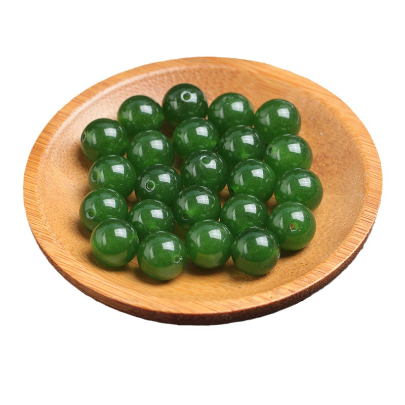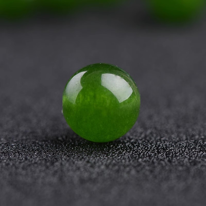 和田玉碧玉菠菜绿散珠子单珠手串手链DIY配饰配珠天然新疆俄料羊