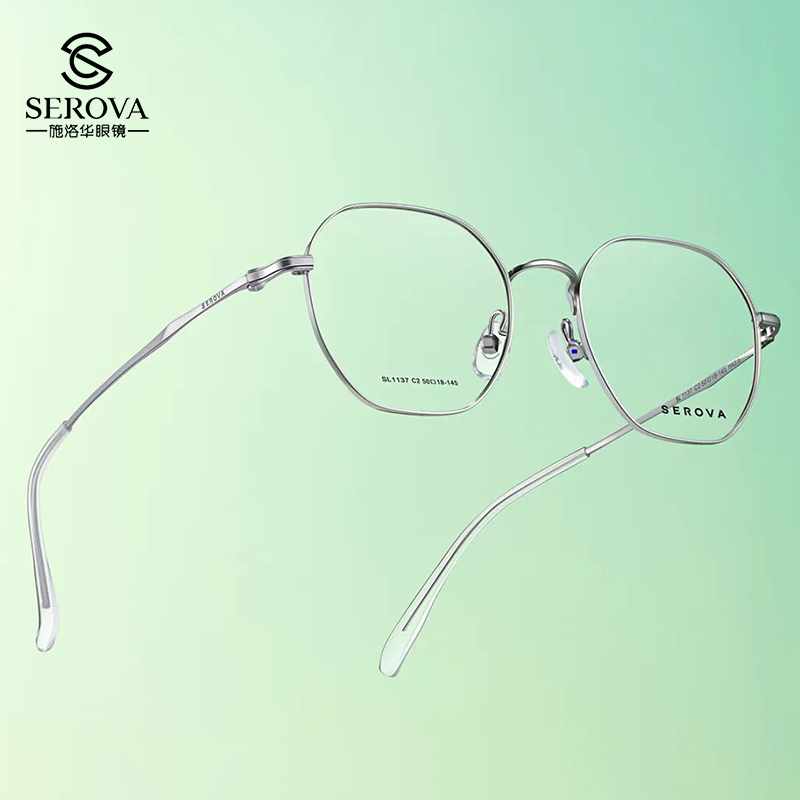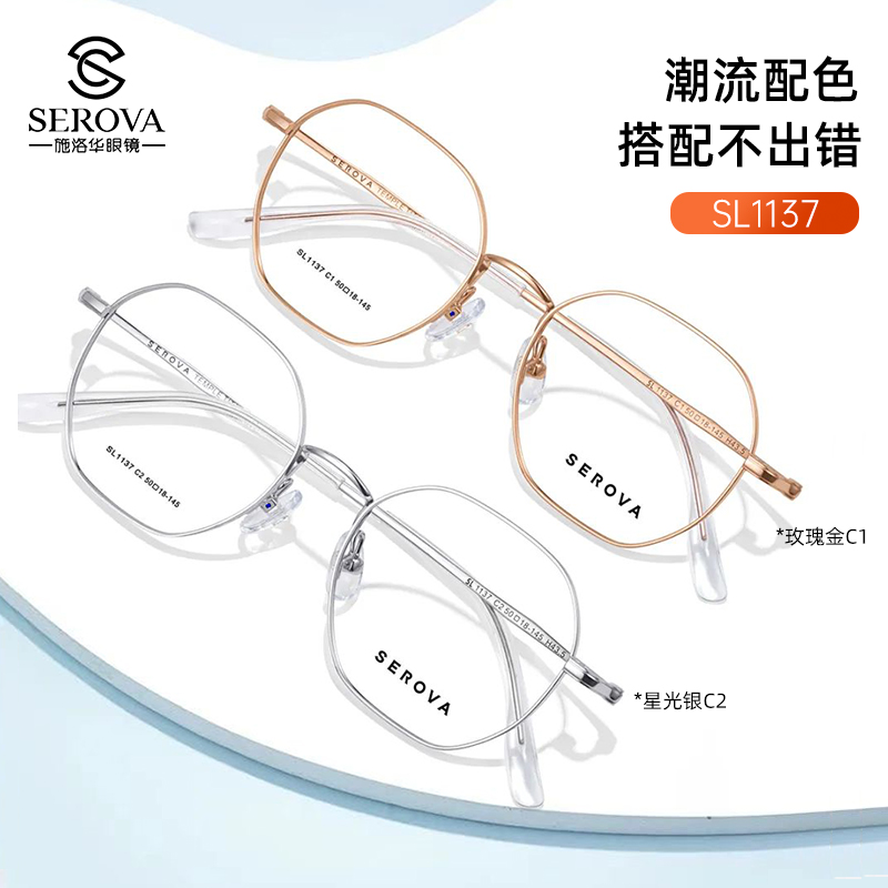 施洛华多边形复古近视眼镜框玫金显白女防蓝光金属护目眼镜SL1137