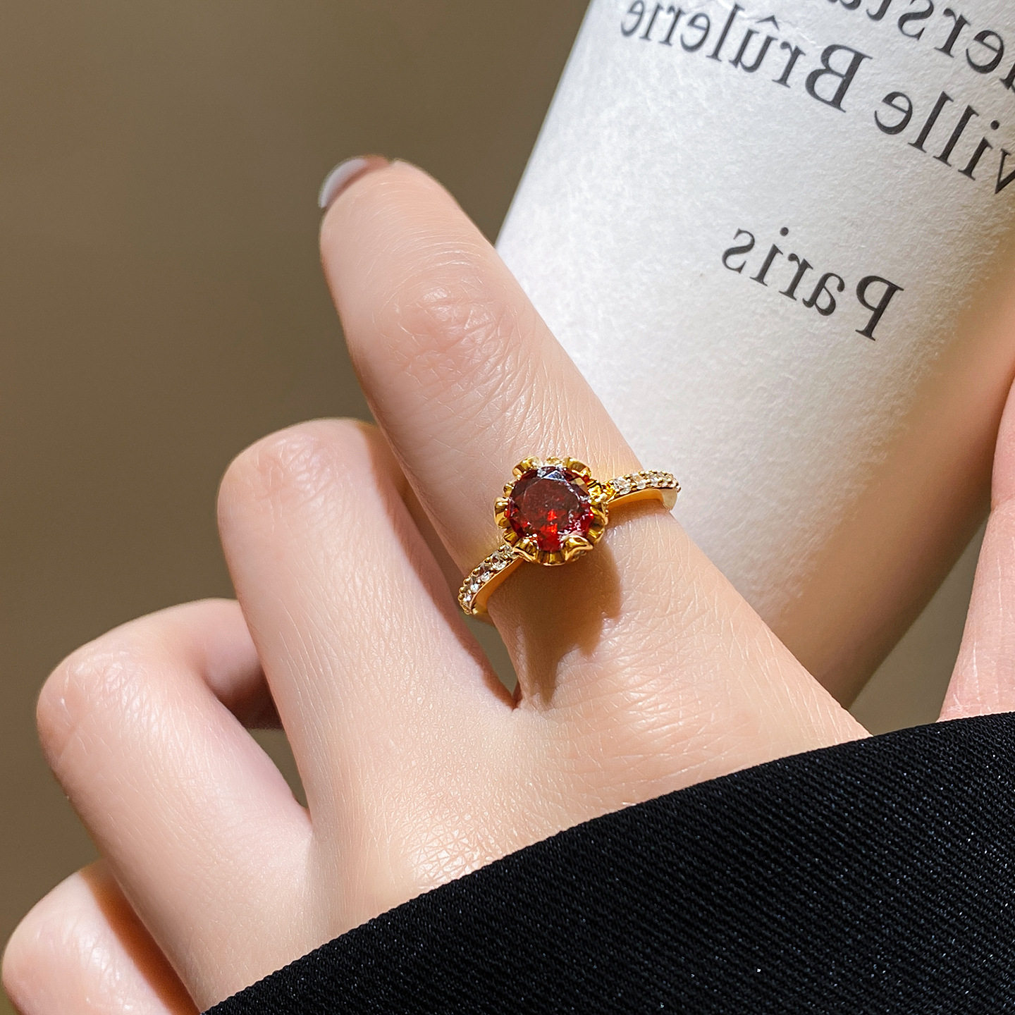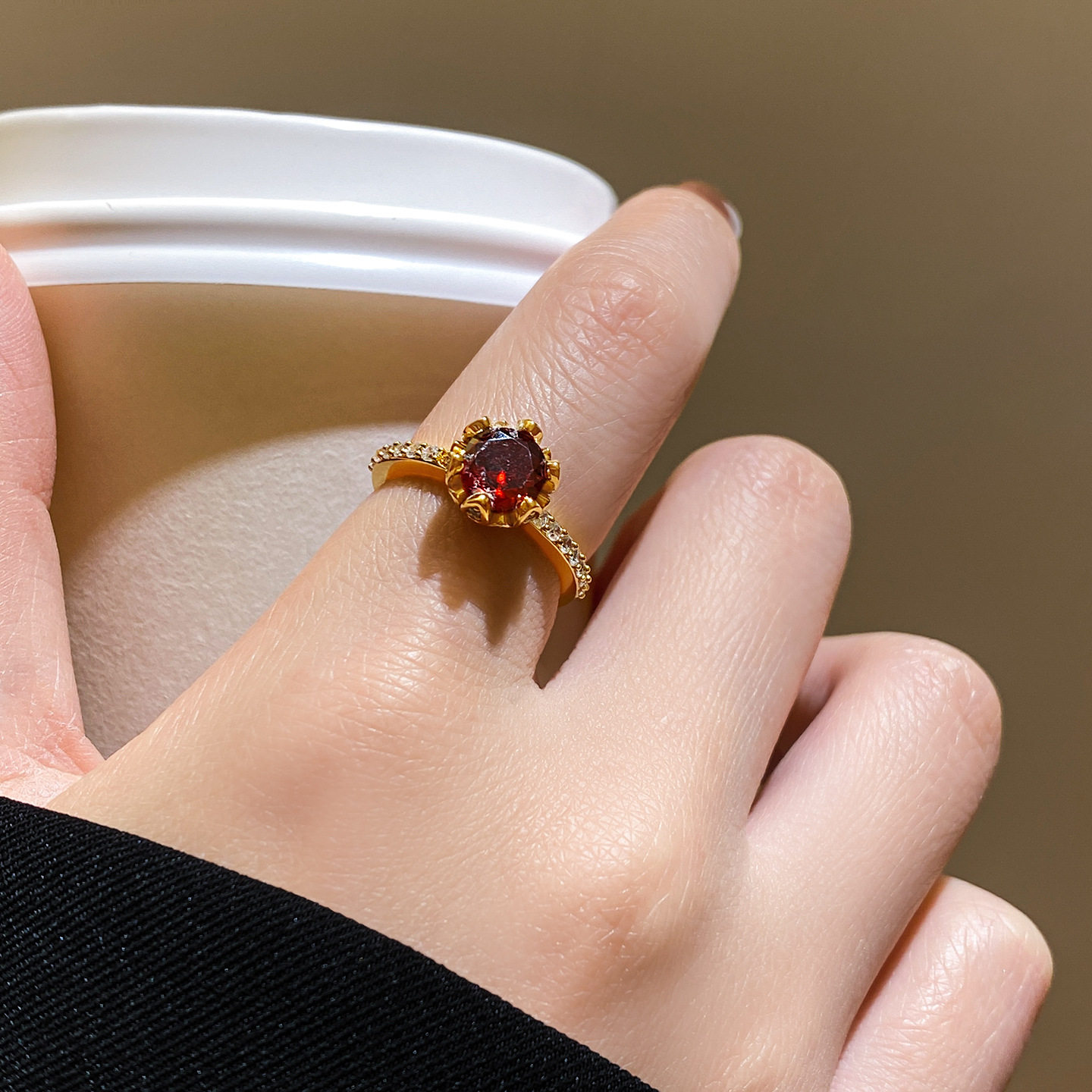 秋冬复古红色锆石沙金开口戒指女小众设计感食指环轻奢配饰品