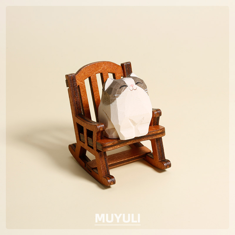 摇动木雕猫咪摆件情侣款办公桌饰品桌面卧室装饰可爱治愈生日礼物