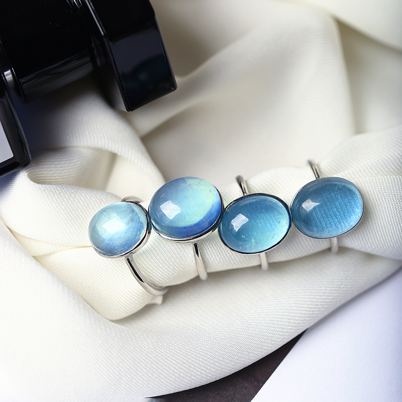 天然水晶海蓝宝戒指女款海蓝宝戒指开口戒轻奢玉石指环ins风女
