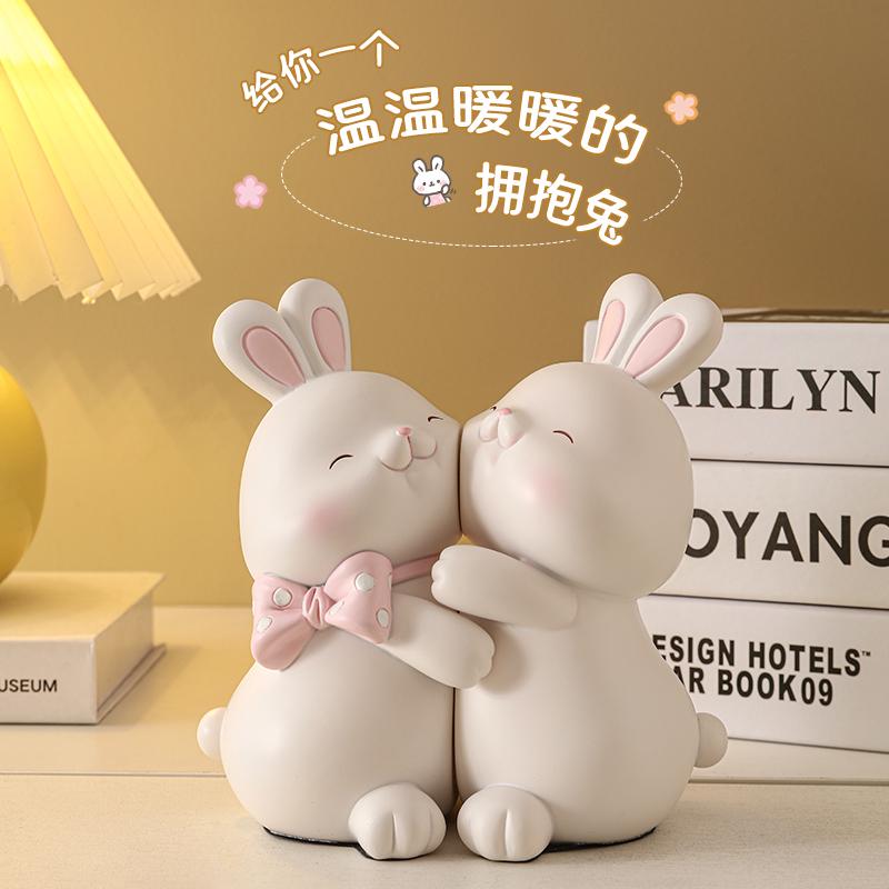 创意可爱抱抱兔子书档家居客厅电视F柜酒柜书架装饰品玄关桌面摆