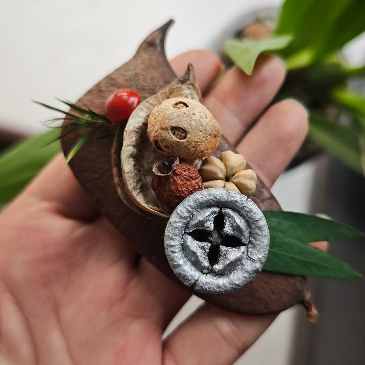 云南大理苍山果实冰箱贴森系磁铁风干刀角豆底座