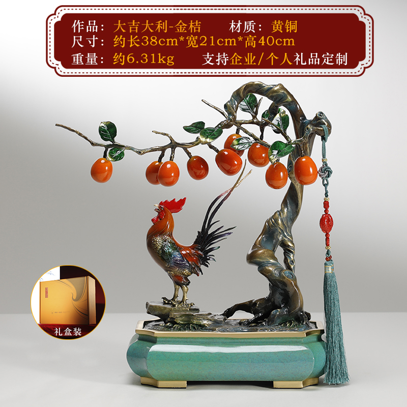 行色人《柿柿如意》国潮全铜玉石摆件客厅博古架办公室礼品定制