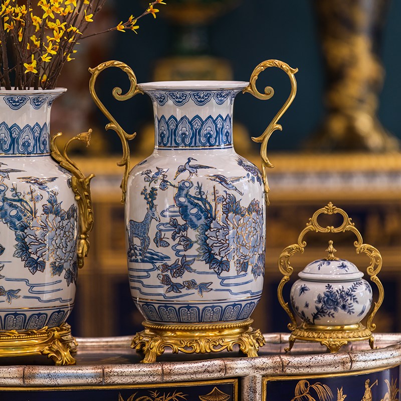 青花瓷中式欧式复古花瓶摆件客厅书房F高级感奢华电视柜博古架装