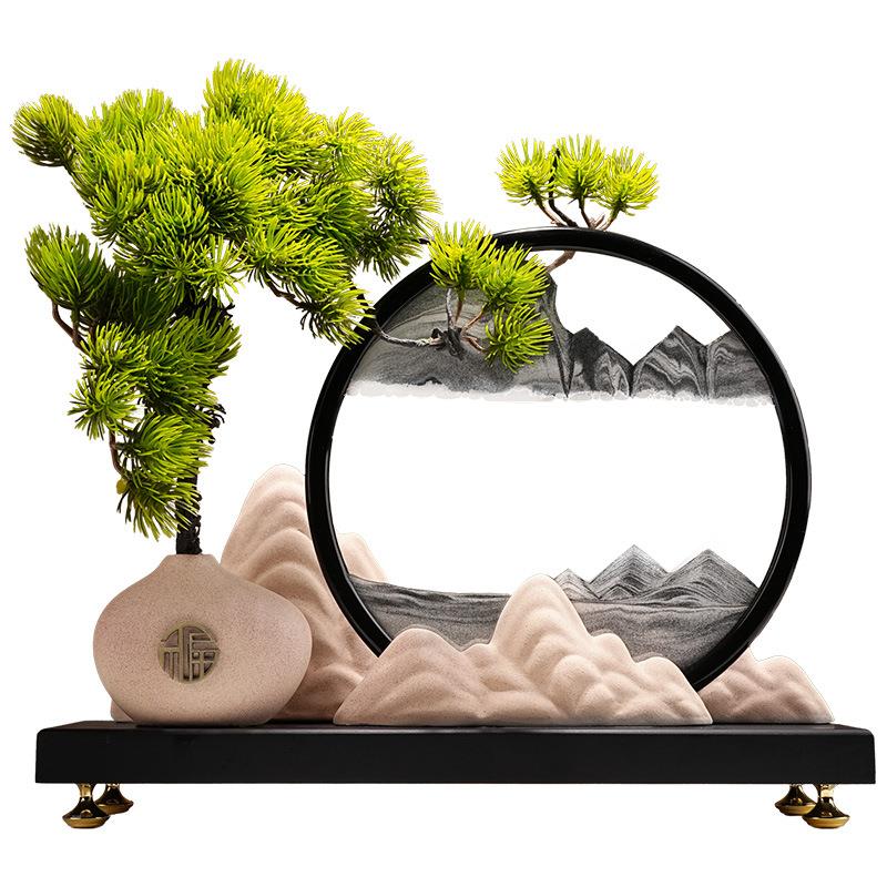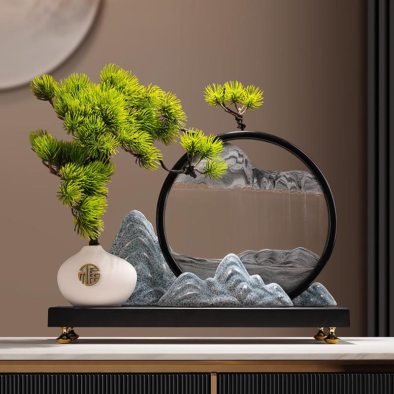 新中式创意迎客松流沙画摆件装饰品高级感客厅玄关办公室乔迁礼物