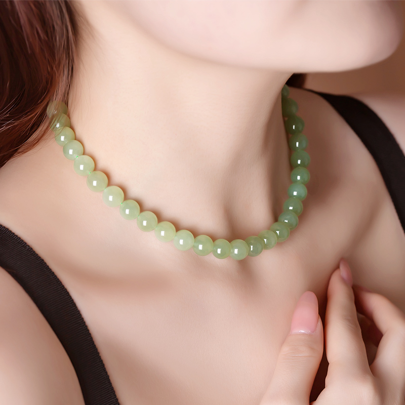 和田玉项链女款天然玉珠散珠串珠锁骨链小众精致轻奢吊坠生日礼物