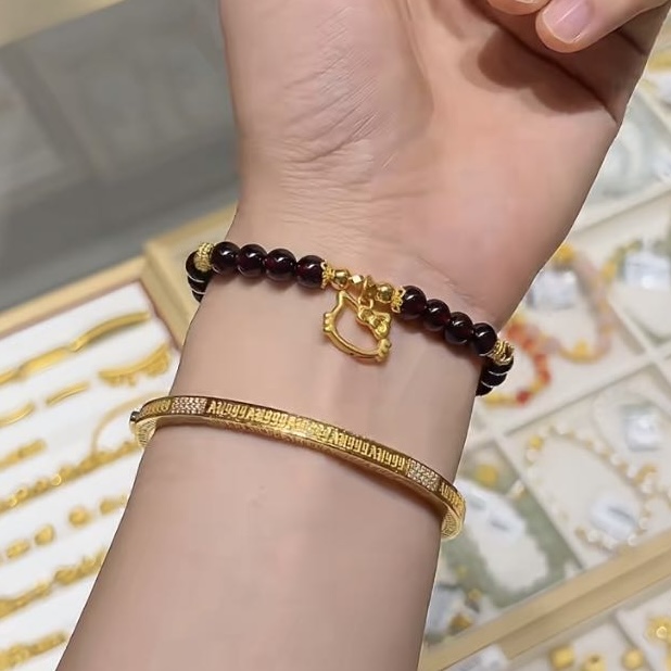 足金999hello kitty镂空KT手串手链女 送女友老婆七夕情人节礼物