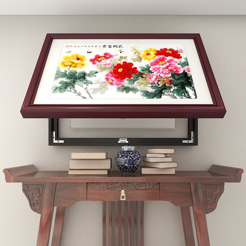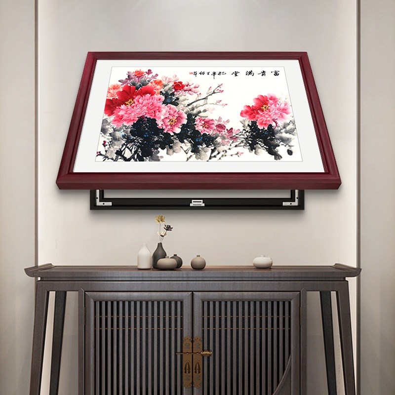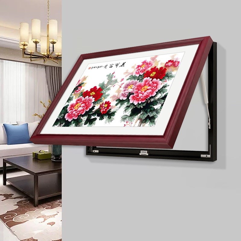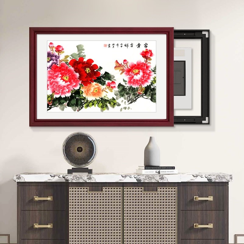 中式牡丹花电表箱装饰画免打孔餐厅遮挡箱可推拉电闸盒花富贵画