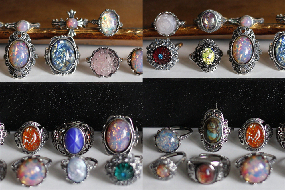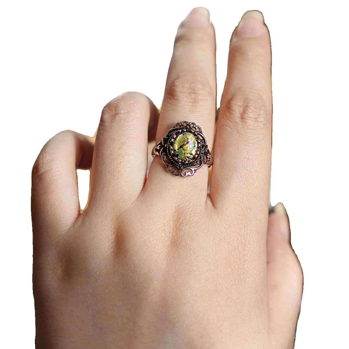 如意|欧美回流中古董欧泊老琉璃神秘调节活口开口925银男女戒指环