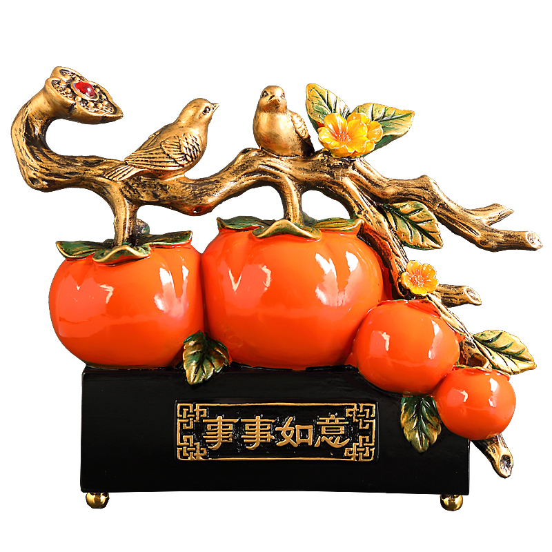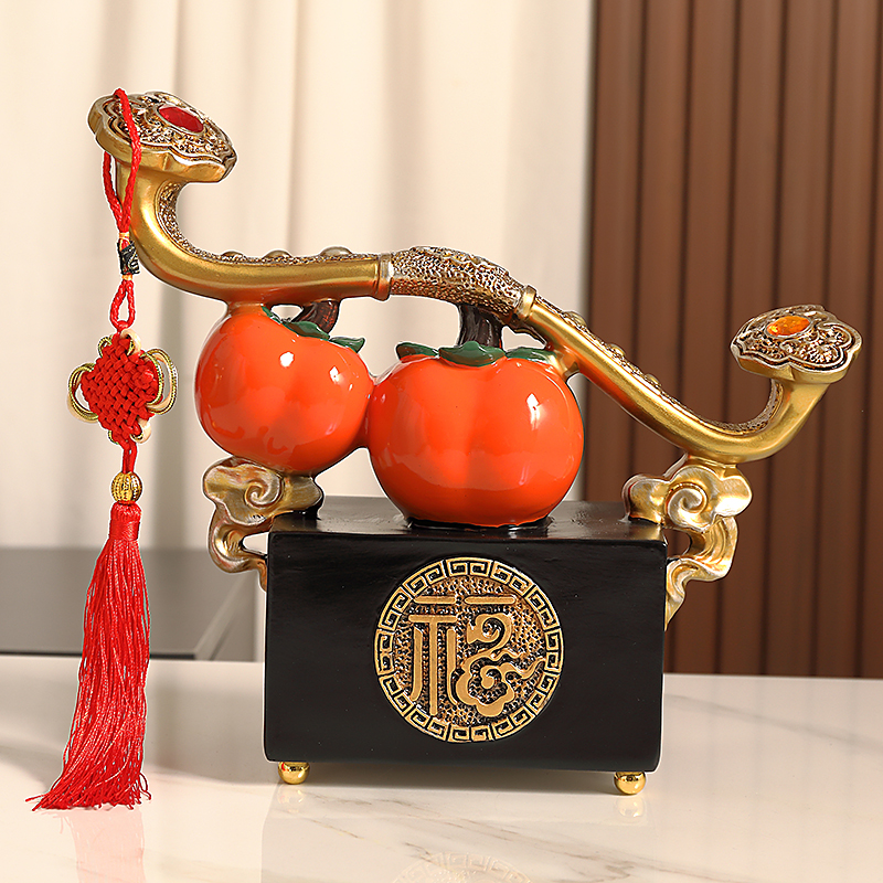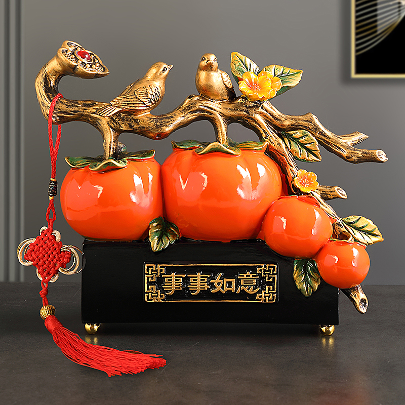 柿柿如意新中式装饰品乔迁之喜新居礼品玄关酒柜客厅摆件好事成双
