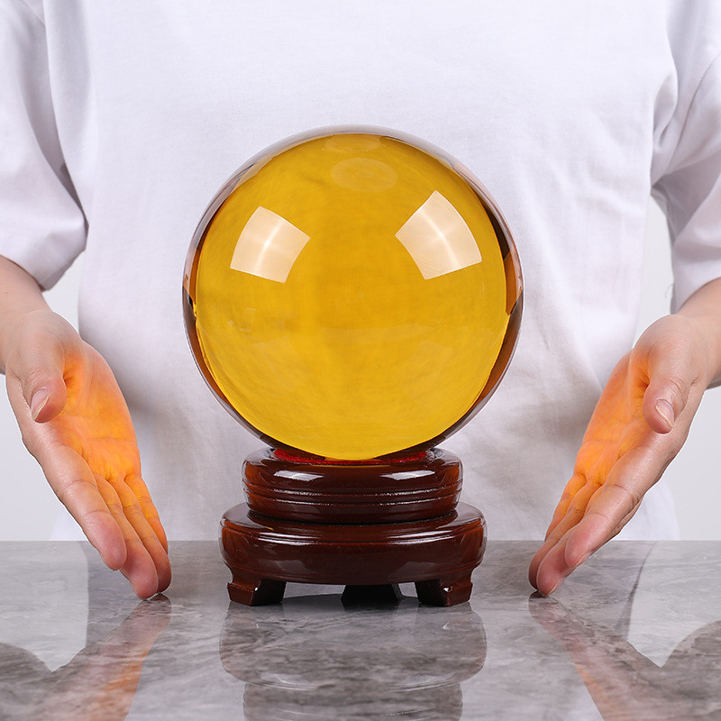 y0ez批发白水晶球摆件透明水晶人造紫黄色圆球玻璃球装饰品客厅办