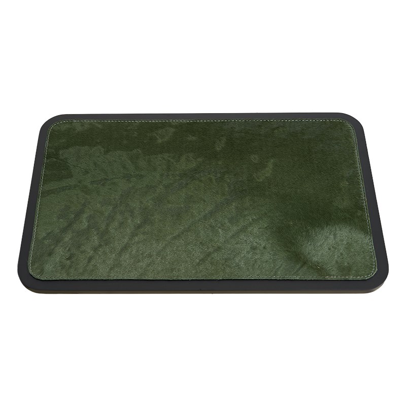 意式轻奢风茶几氛围感绿色马毛木质托盘长方形首饰茶杯装饰盘摆件