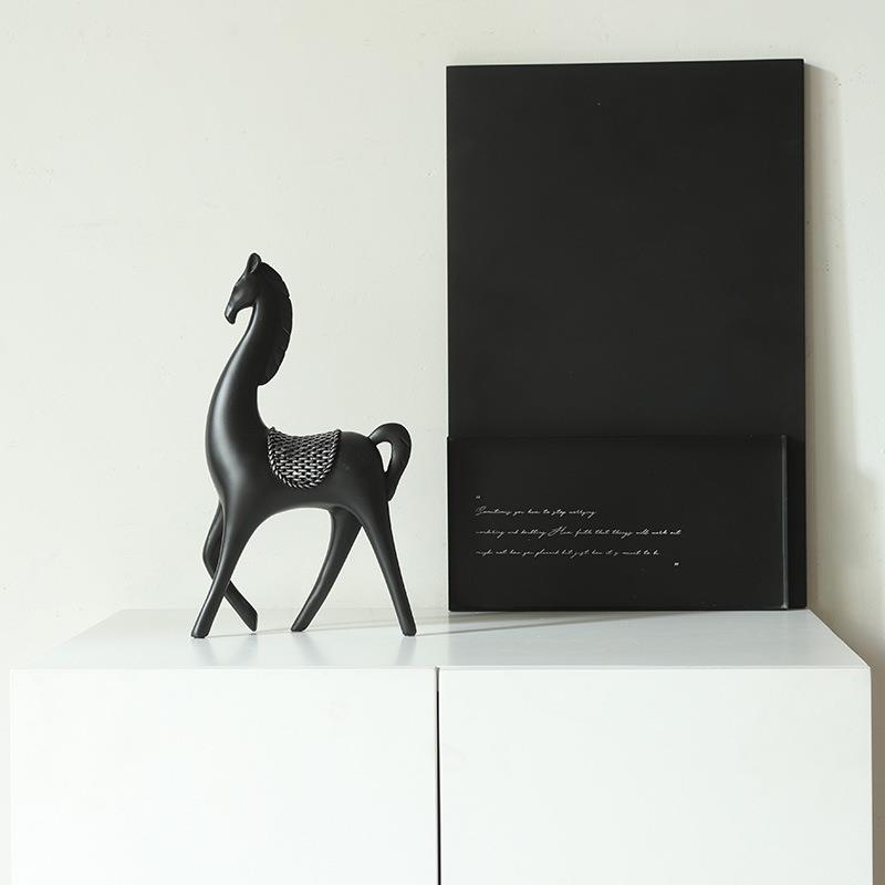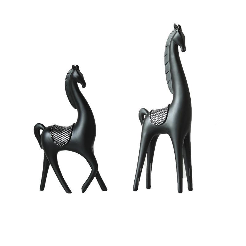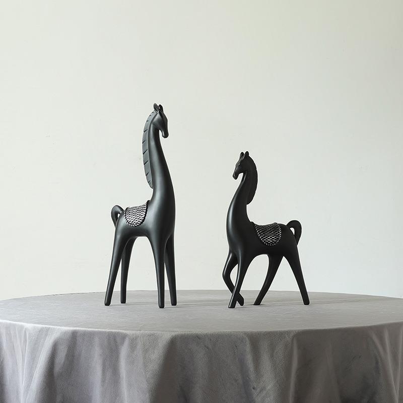 境现情侣马摆件客厅酒柜跨书房桌工面家居软装黑色马饰品代树脂艺
