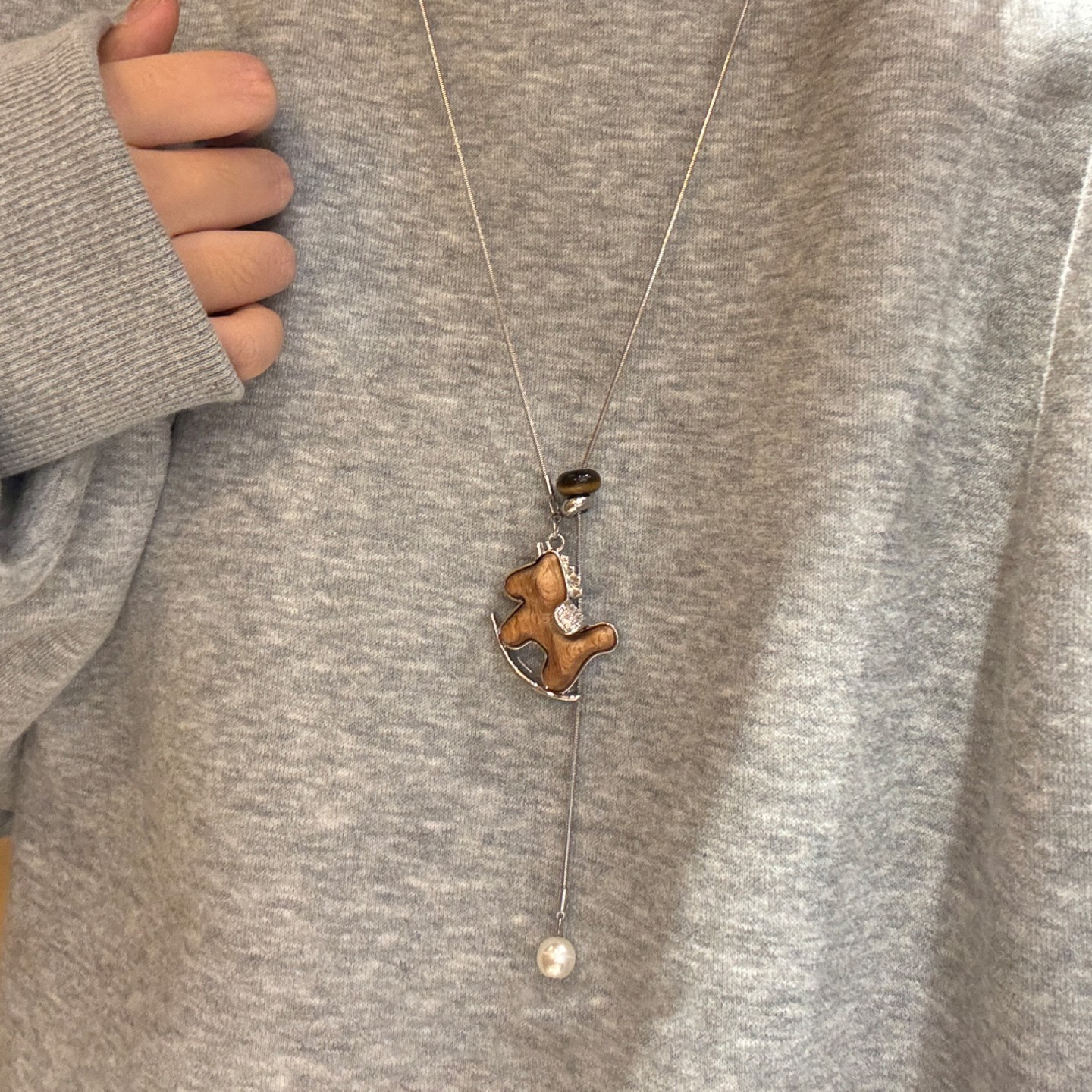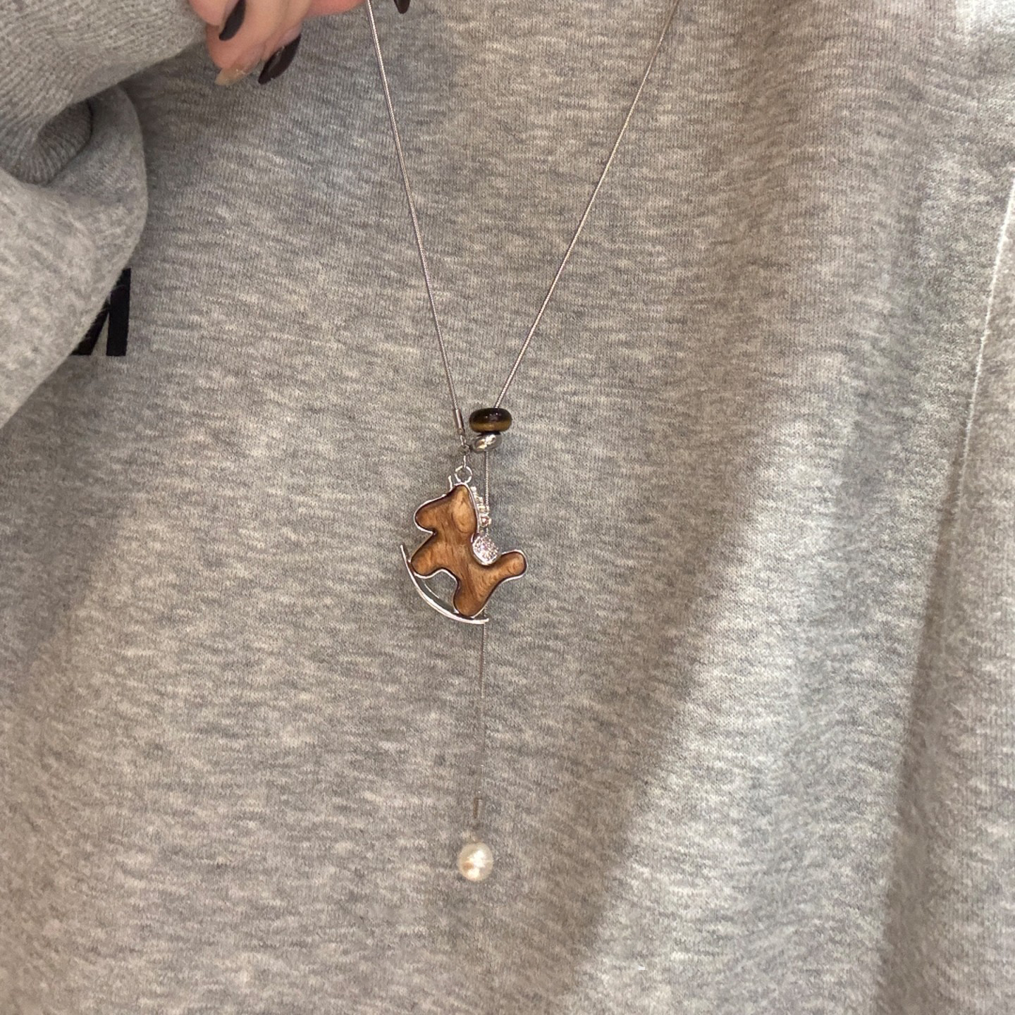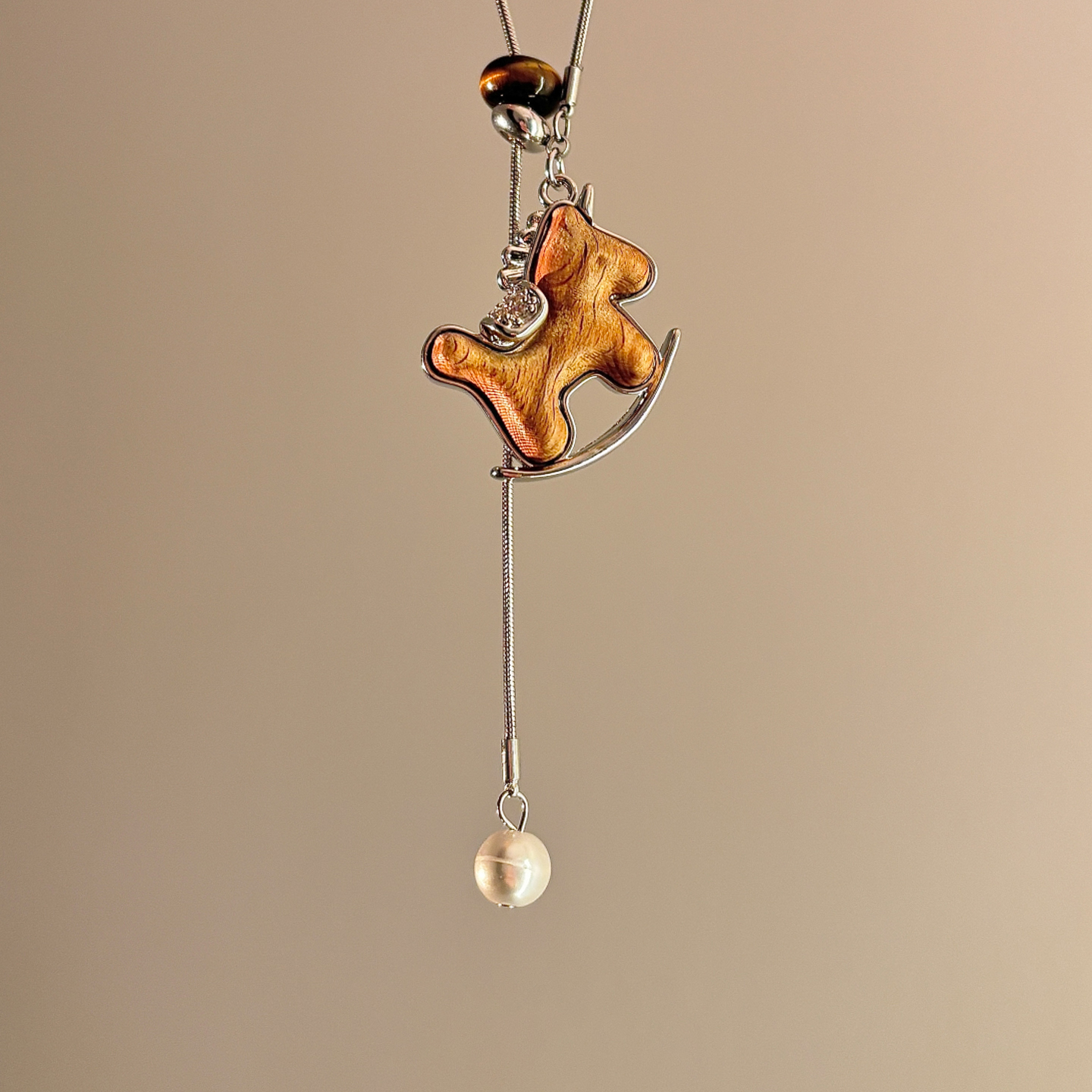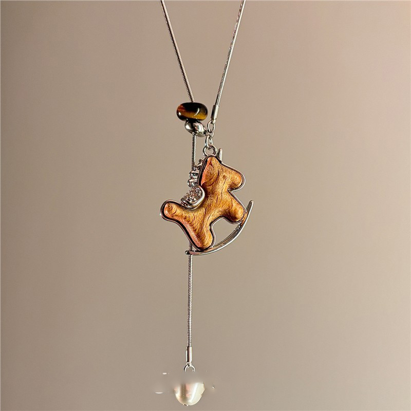 小众设计感木纹摇摇马吊坠毛衣链秋冬复古百搭个性项链