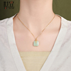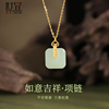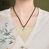 和田玉平安无事牌项链女黑绳纯银金镶玉吊坠新款项链男生日礼物