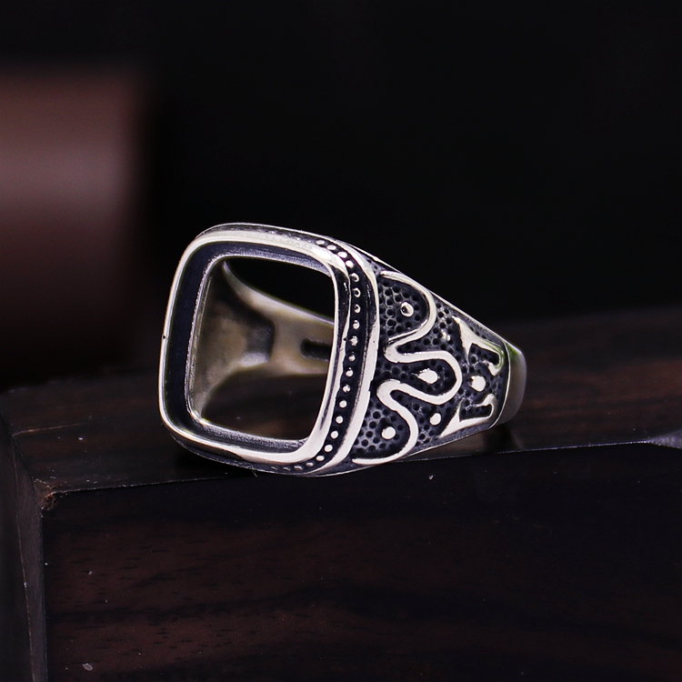 S925纯银戒指空托男女圆角方形DIY蜜蜡松石琥珀镶嵌托10*10 13*13