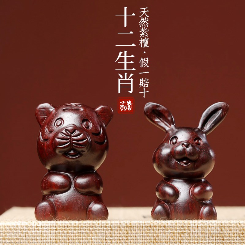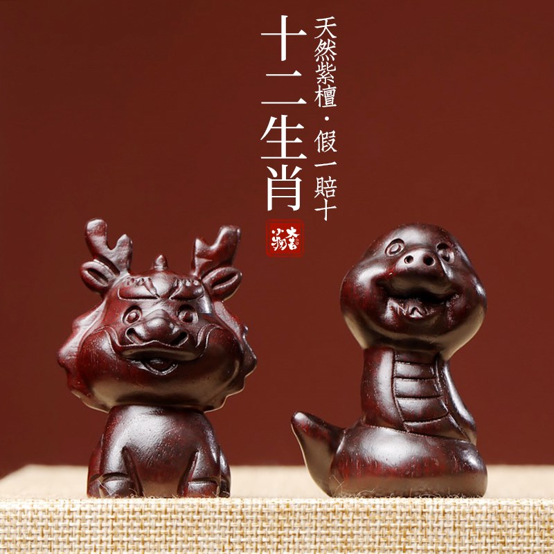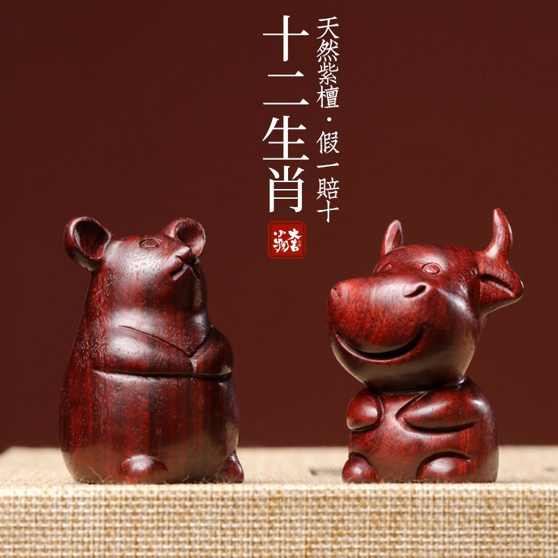 天然紫檀木十二生肖鼠牛虎兔龙蛇马羊猴鸡狗猪手把件可爱桌面摆件