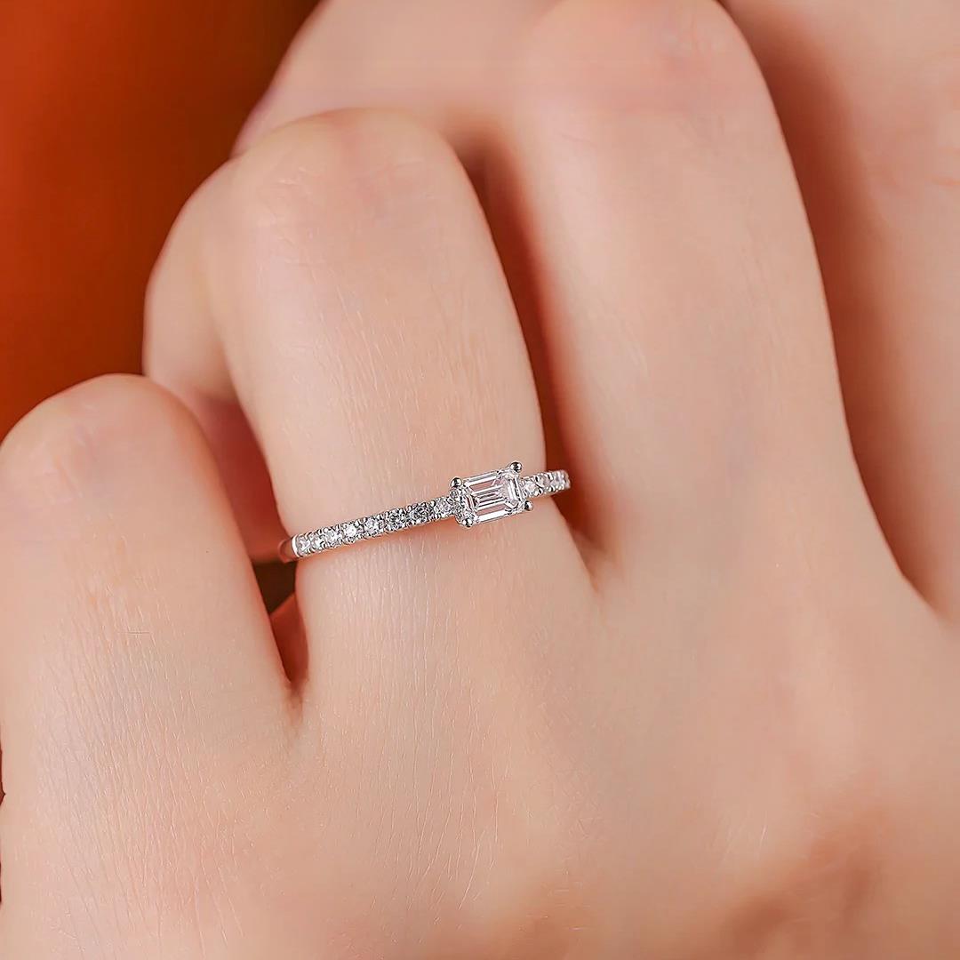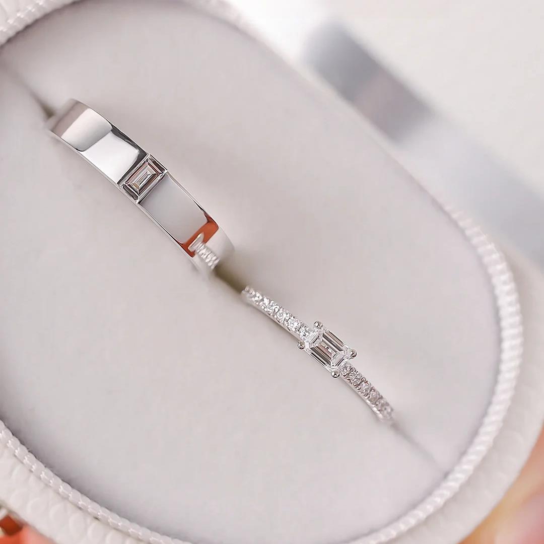 YUDANDUN莫桑戒指长方形冰糖小方糖钻戒女款冰花小排戒钻简约时尚