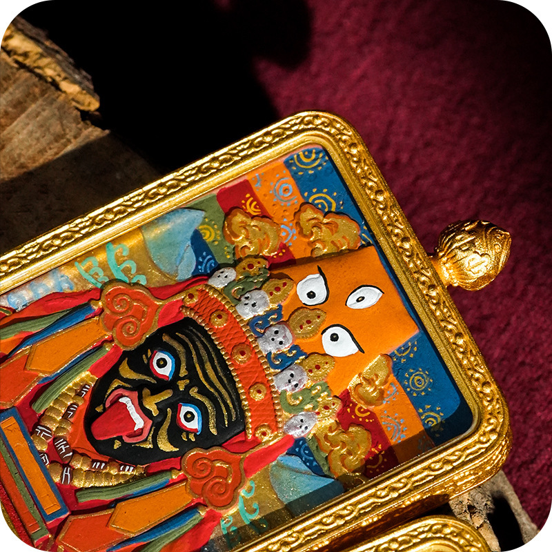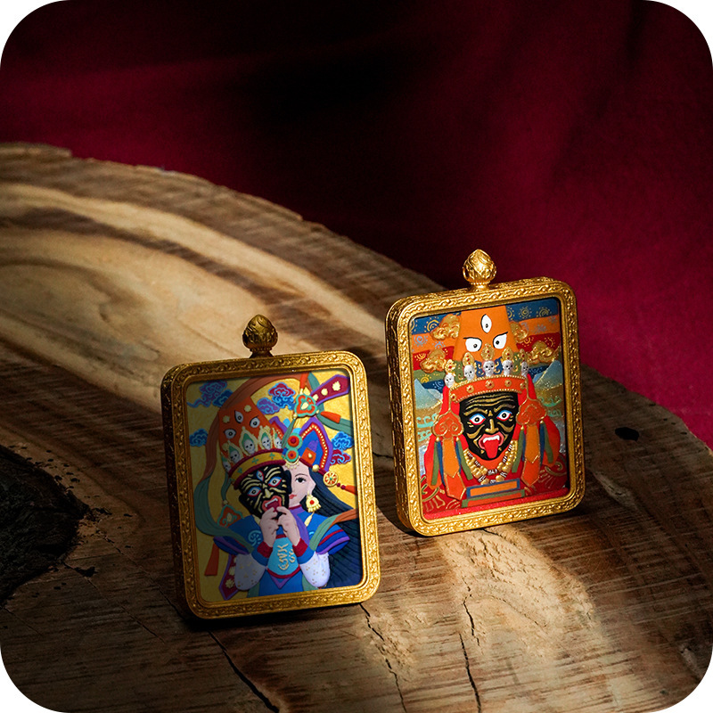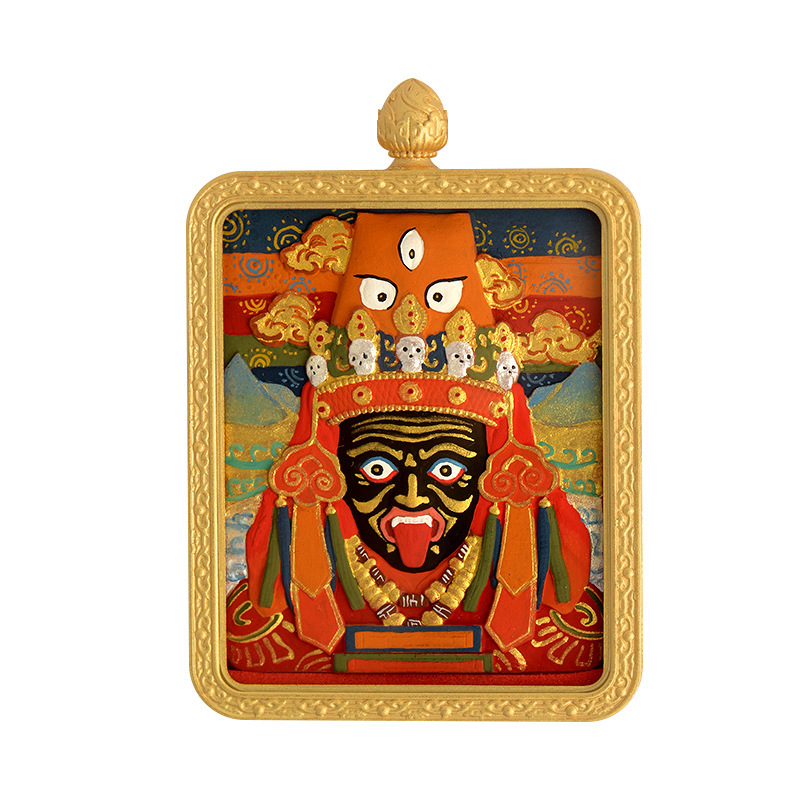 手绘浮雕唐卡吊坠黄财绿度姆手工DIY可定图唐卡吊坠五爷扎基拉姆