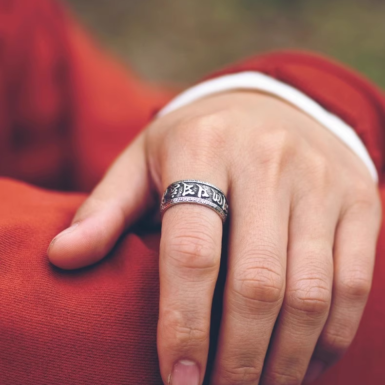 六字真言戒指男女士款情侣复古小众高级感个性开口指环尾指扳指