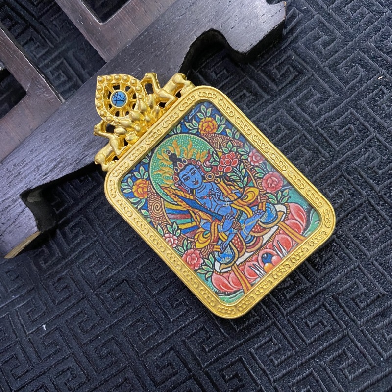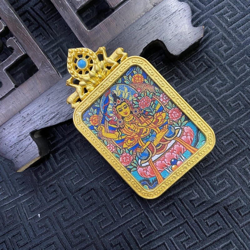 新品唐卡吊坠八大守护神项链布艺画芯双鹿嘎乌盒藏传合金画盒