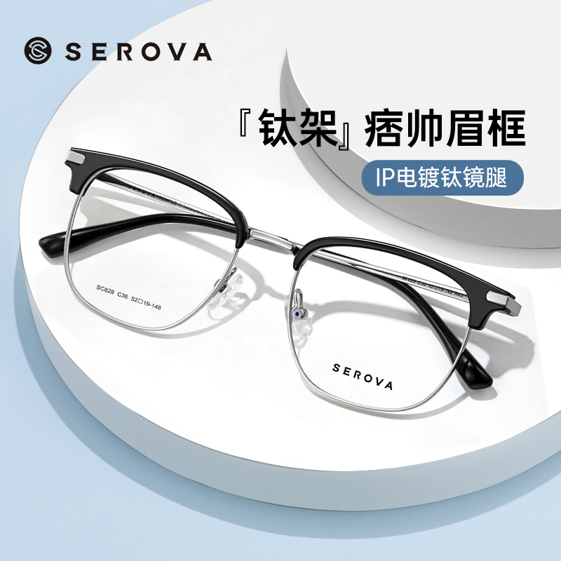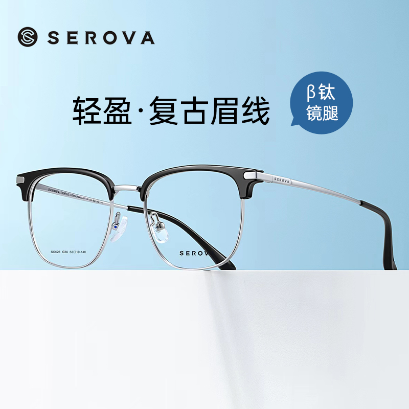 施洛华半框眉线钛架近视眼镜男可配度数超轻镜架防蓝光显瘦SC628