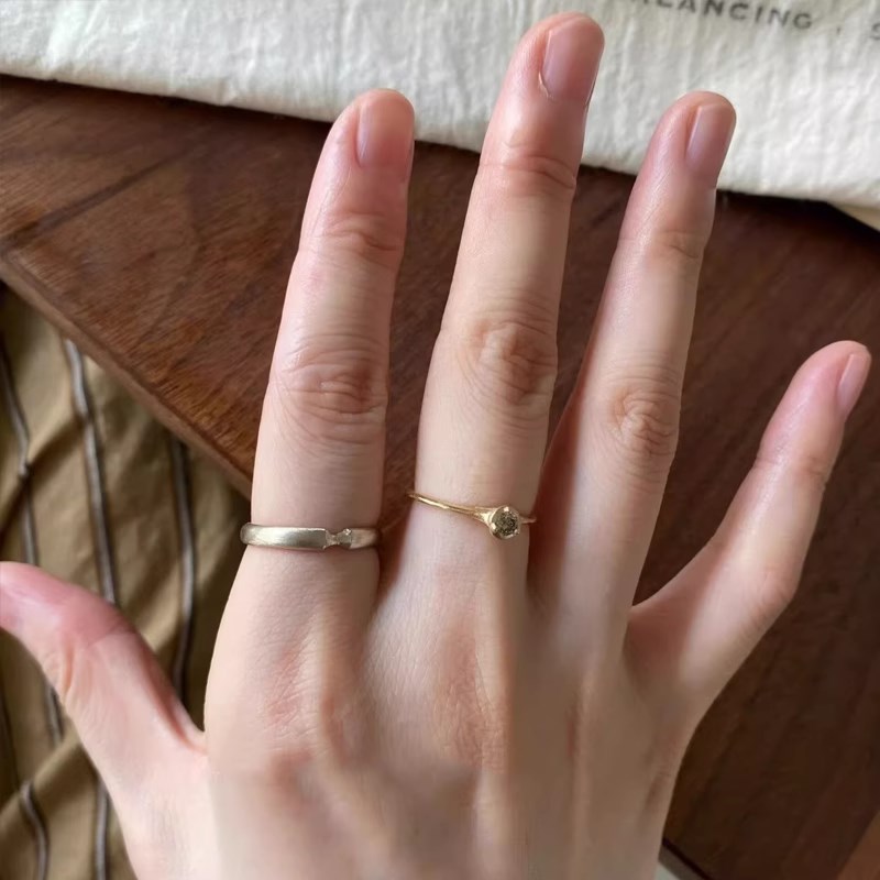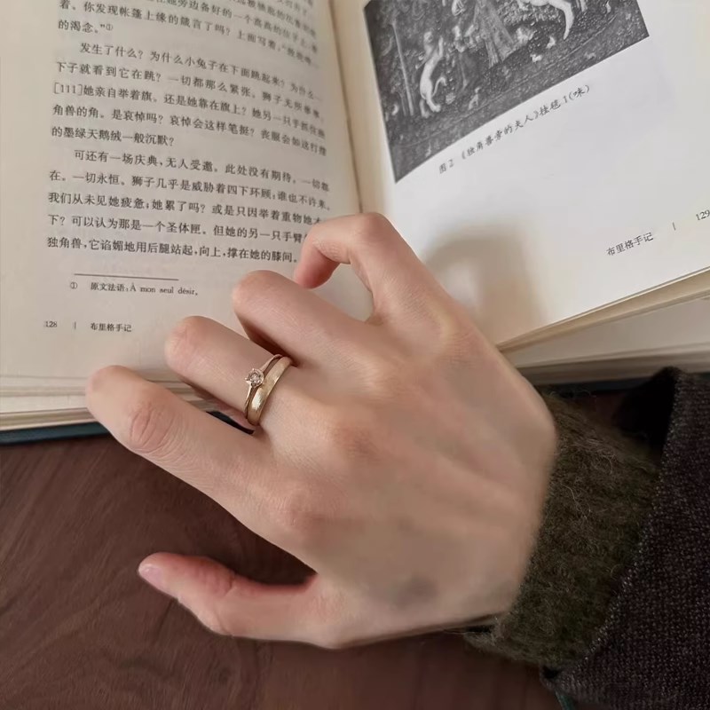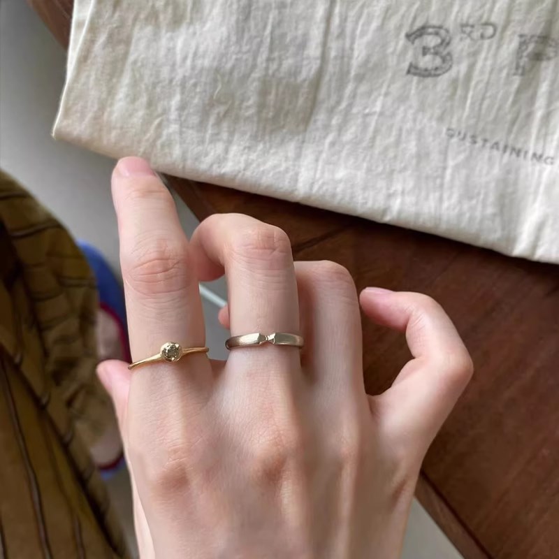 S925a纯银极简拉丝锆石戒指女小众设计轻奢高级感复古叠戴食指指