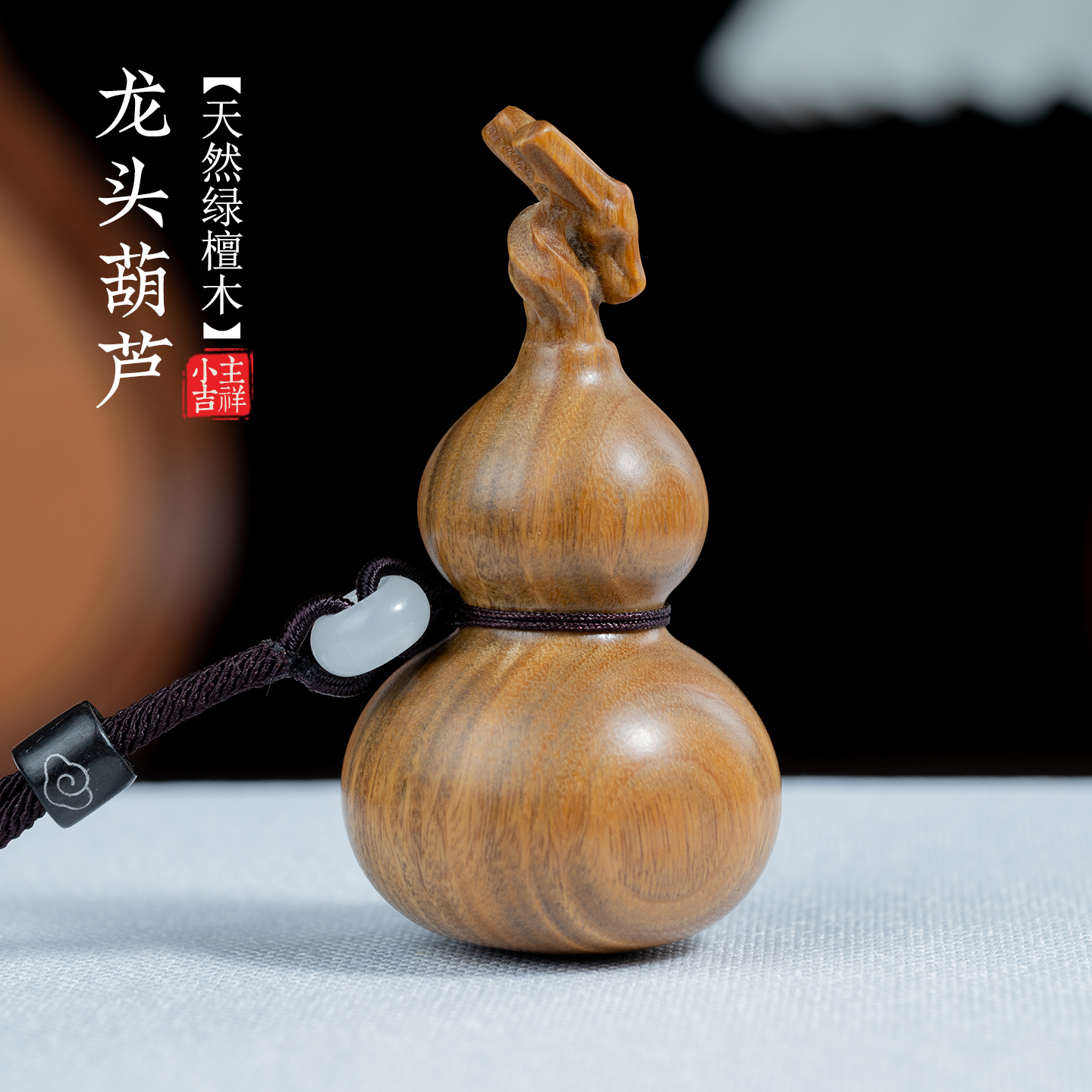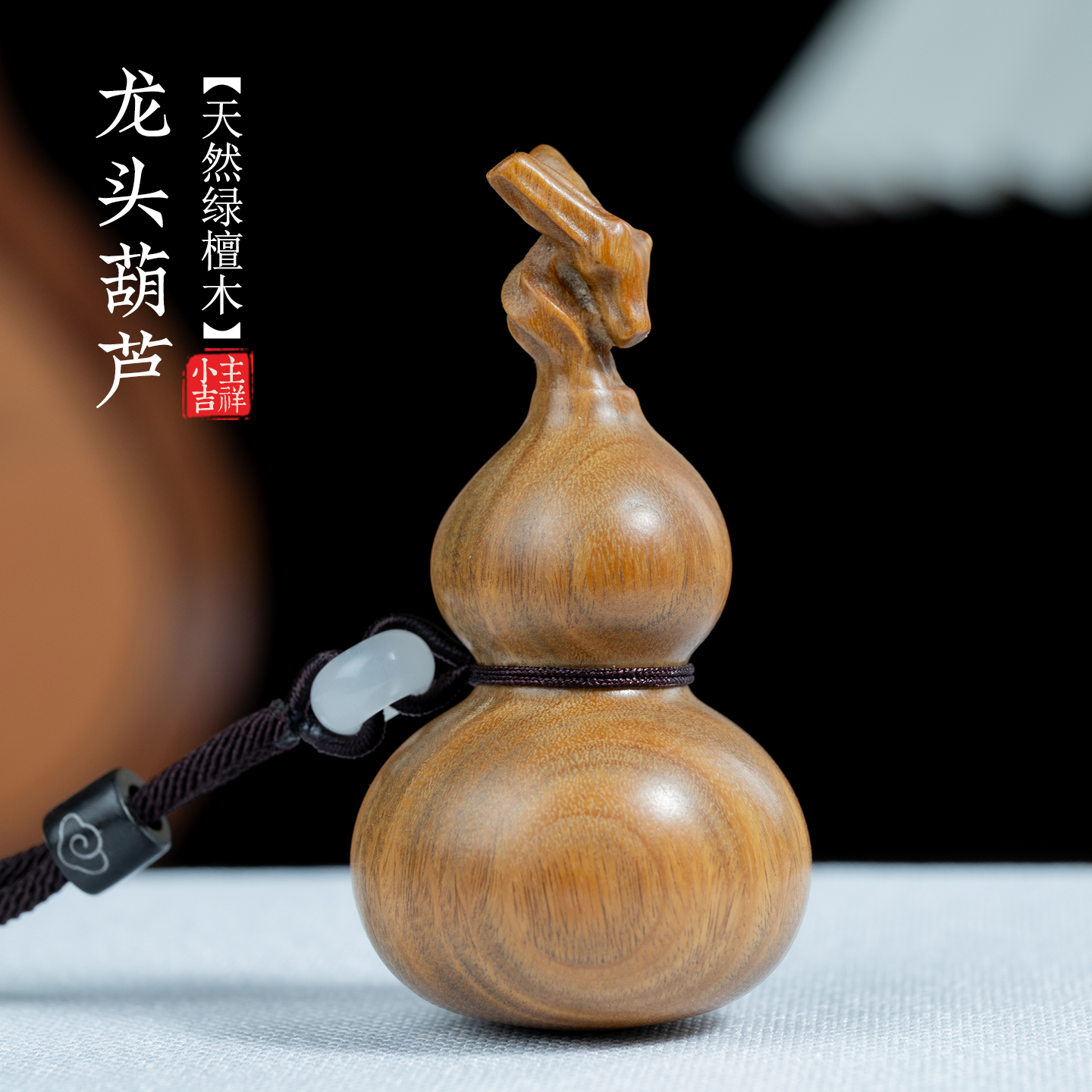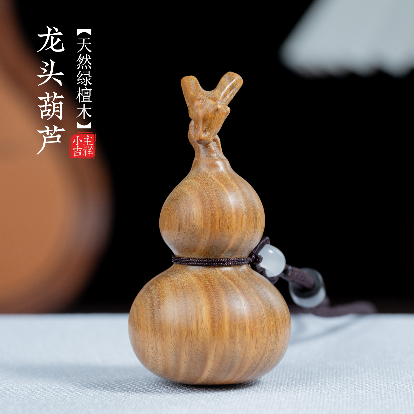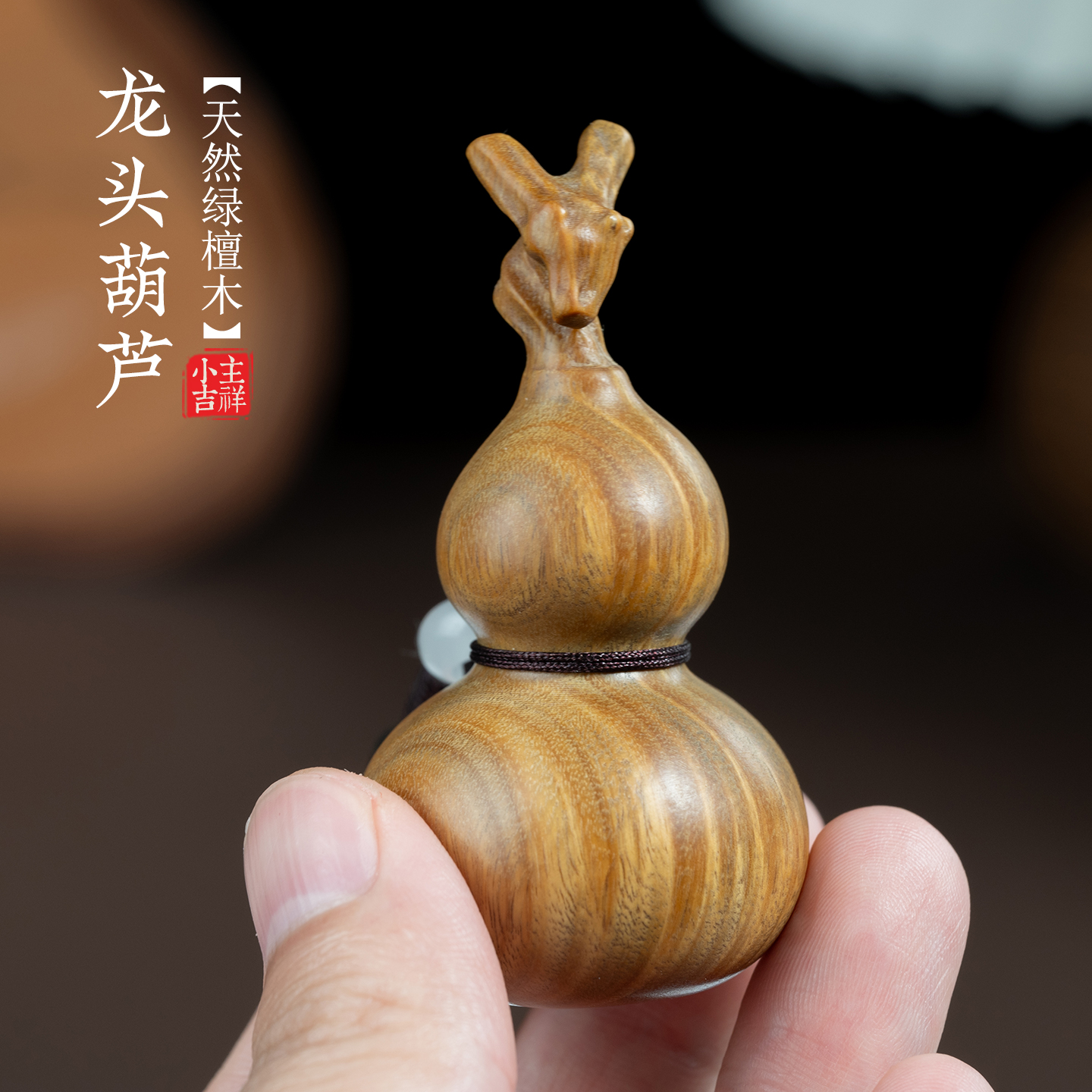 天然绿檀木雕龙头葫芦摆件创意手把件福禄桌面装饰木质文玩中国风