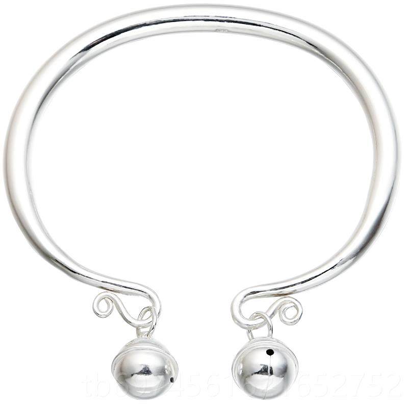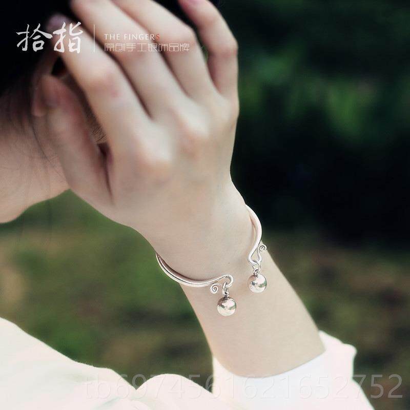 新款银款手镯女999足银宫铃铛光面心纯银饰实品开环口网红年轻手