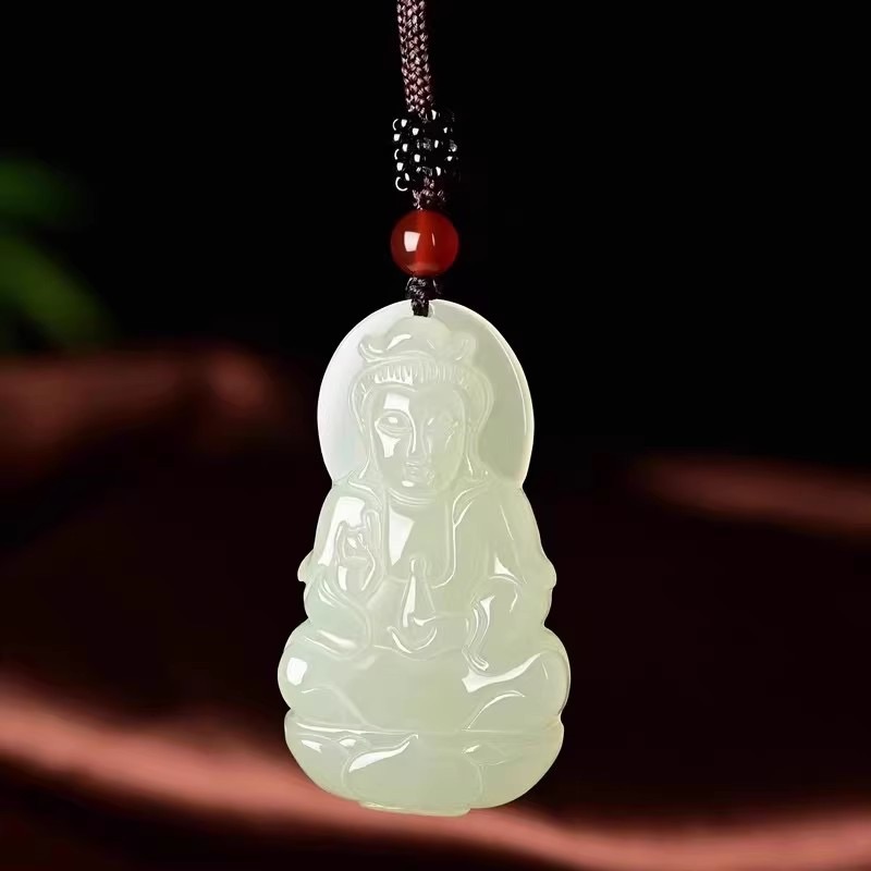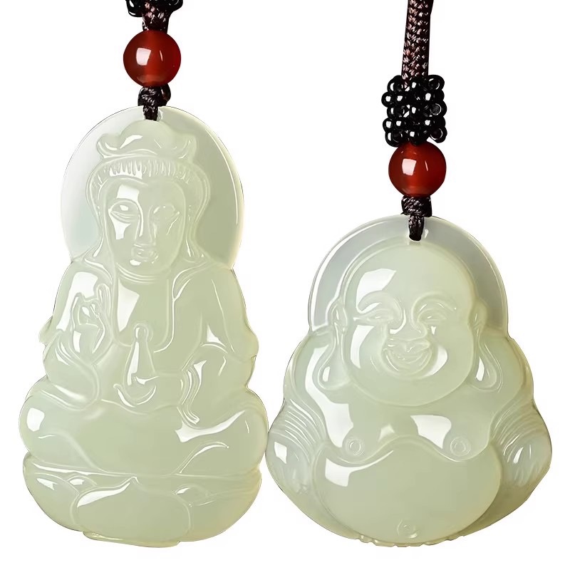 和田色玉观音玉佛男女款情侣晴水观音项链笑佛玉石饰品百搭吊坠