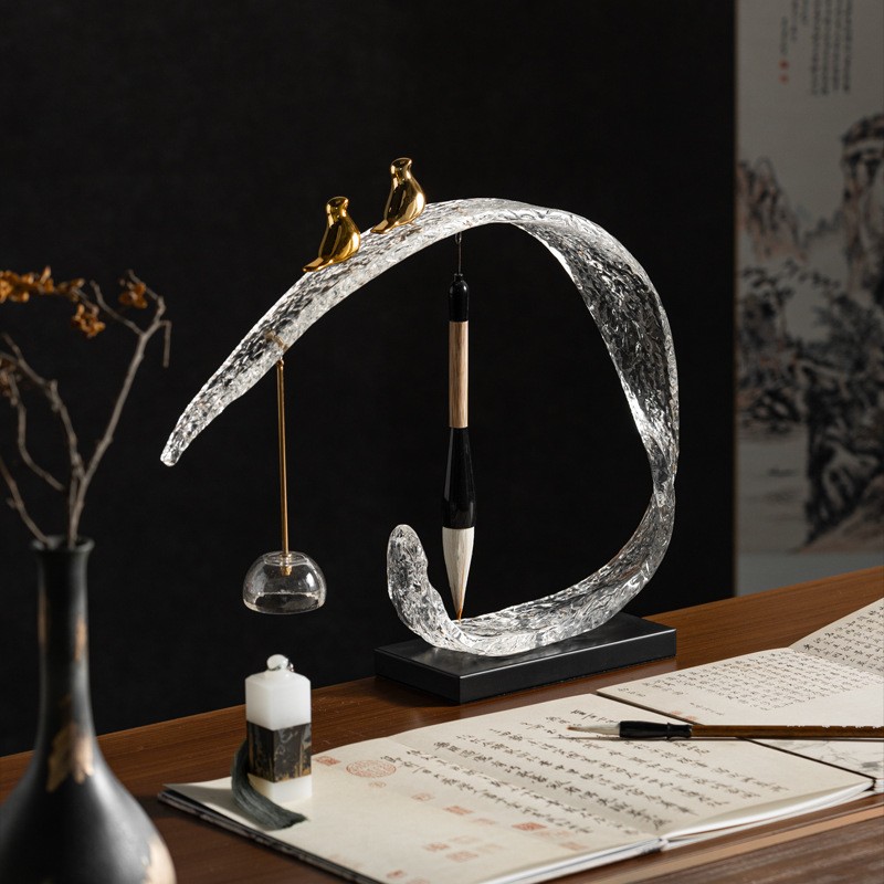 简约新中式风家居书房样板房酒店书桌展厅创意树脂毛笔架装饰摆件