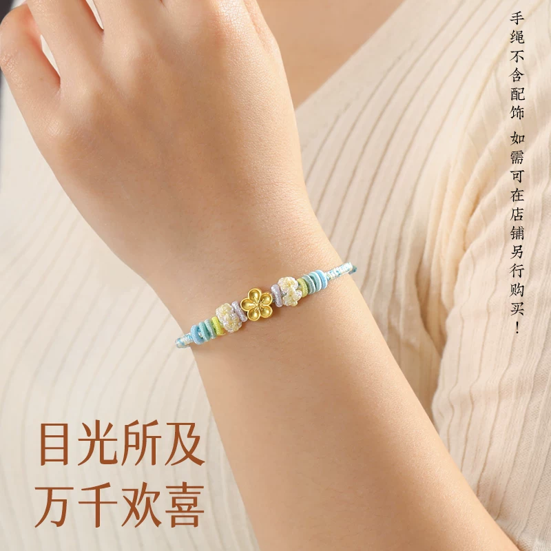 高颜值设计感手绳穿黄金清新糖果色编织绳甜美减龄手链礼物送闺蜜