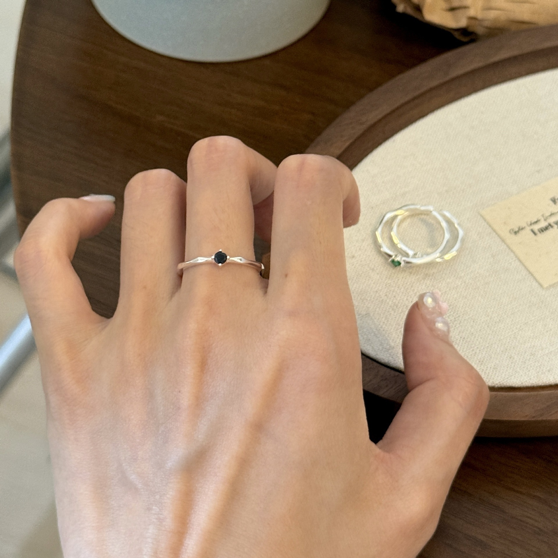 韩国进口S925纯银光面素圈戒指女极细线条镶嵌小众高级开口可调节