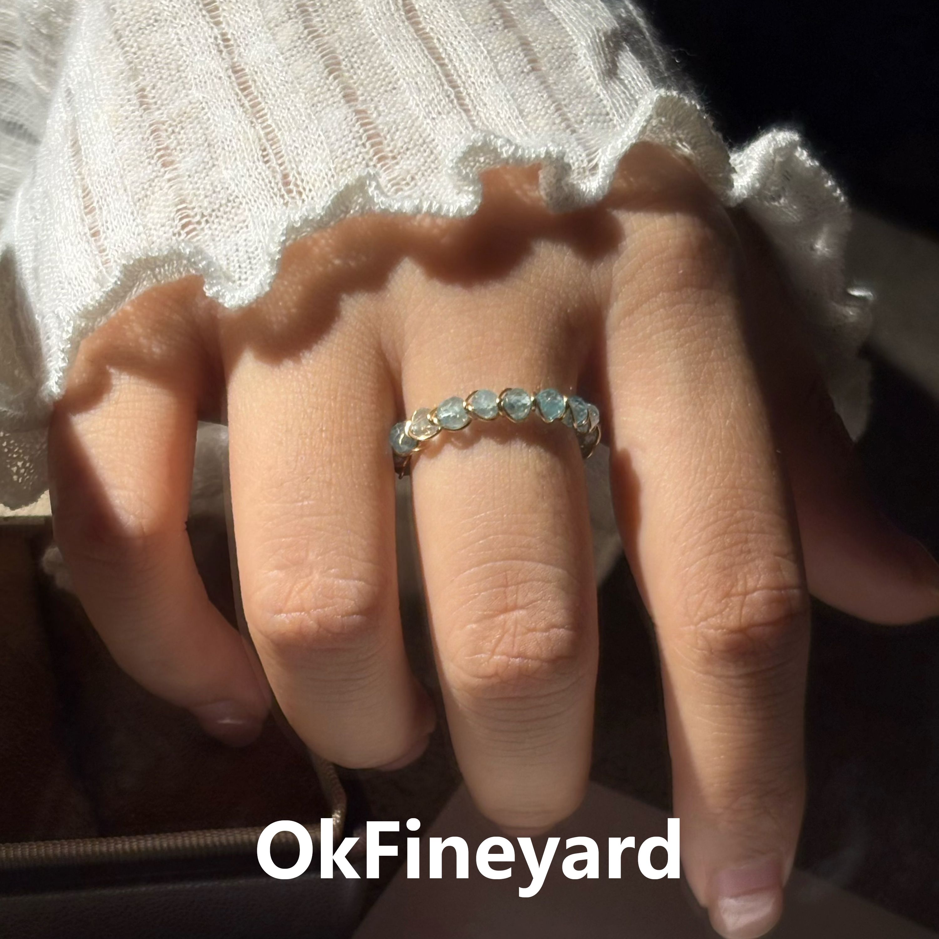 OkFineyard天然石蓝锂辉戒指女小众设计高级感素圈食指戒开口指环