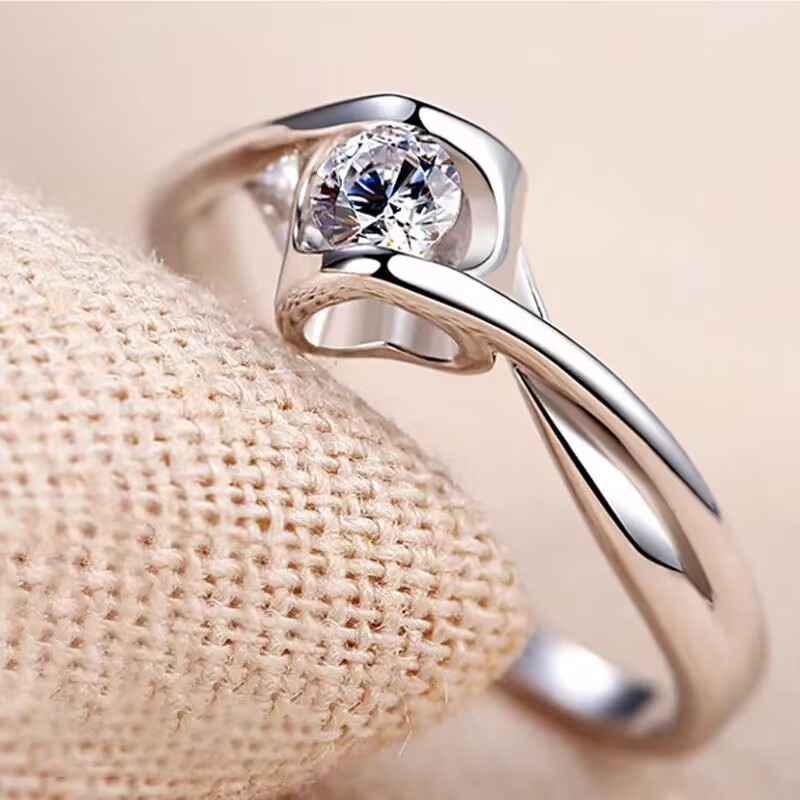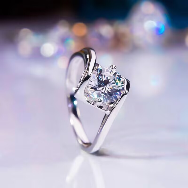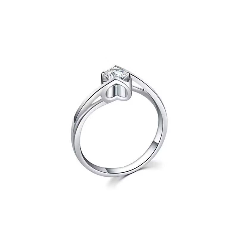 戒指女天使之吻心形钻戒韩版简约莫桑石开口银戒子学生七夕