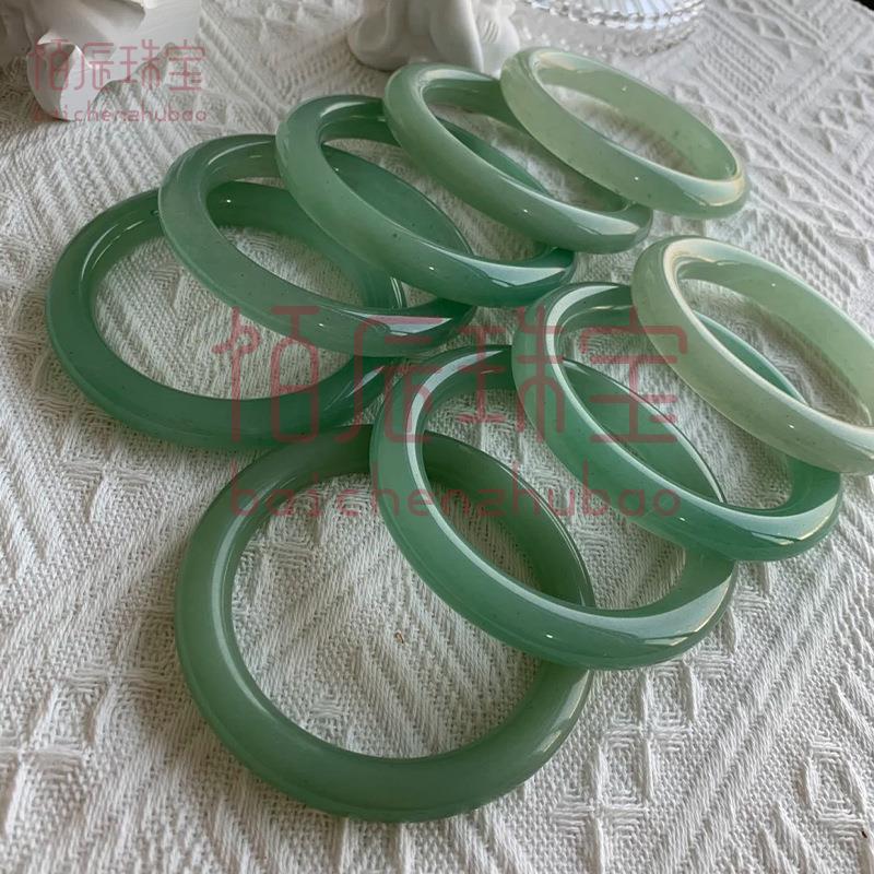 2026厂家天然东陵玉手镯清新翡翠色女款浅满绿色细圆条镯子美人镯
