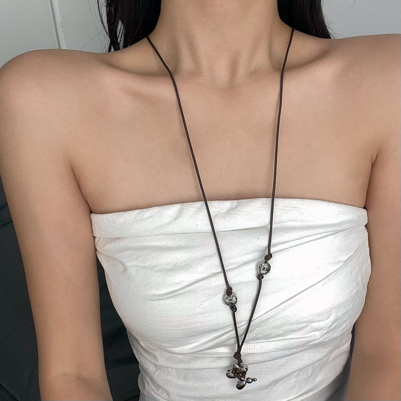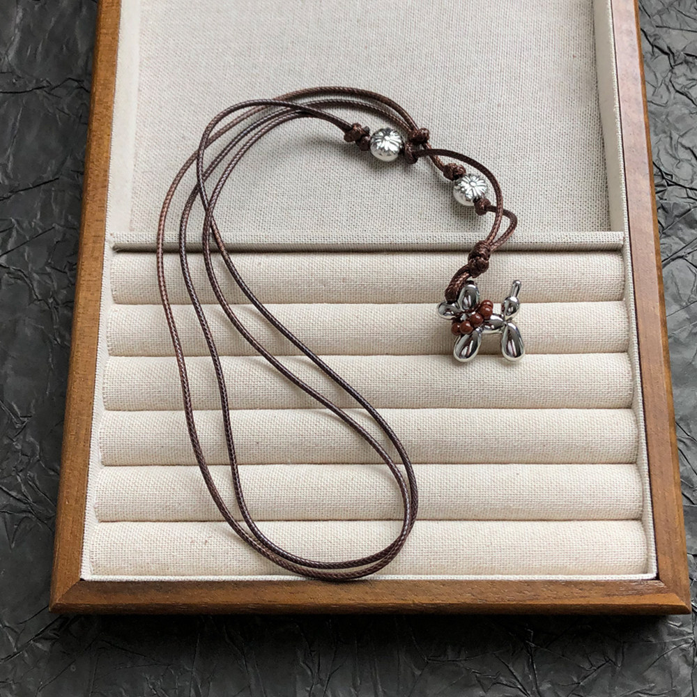 韩国博主同款编织绳腊肠小狗吊坠项链女时尚简约ins可调节毛衣链