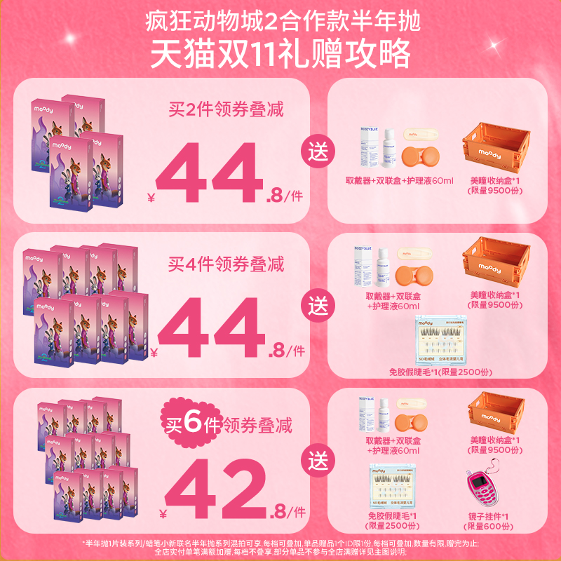 moody美瞳疯狂动物城2合作尼尼粉彩色隐形眼镜半年抛黑桃冰茶2片
