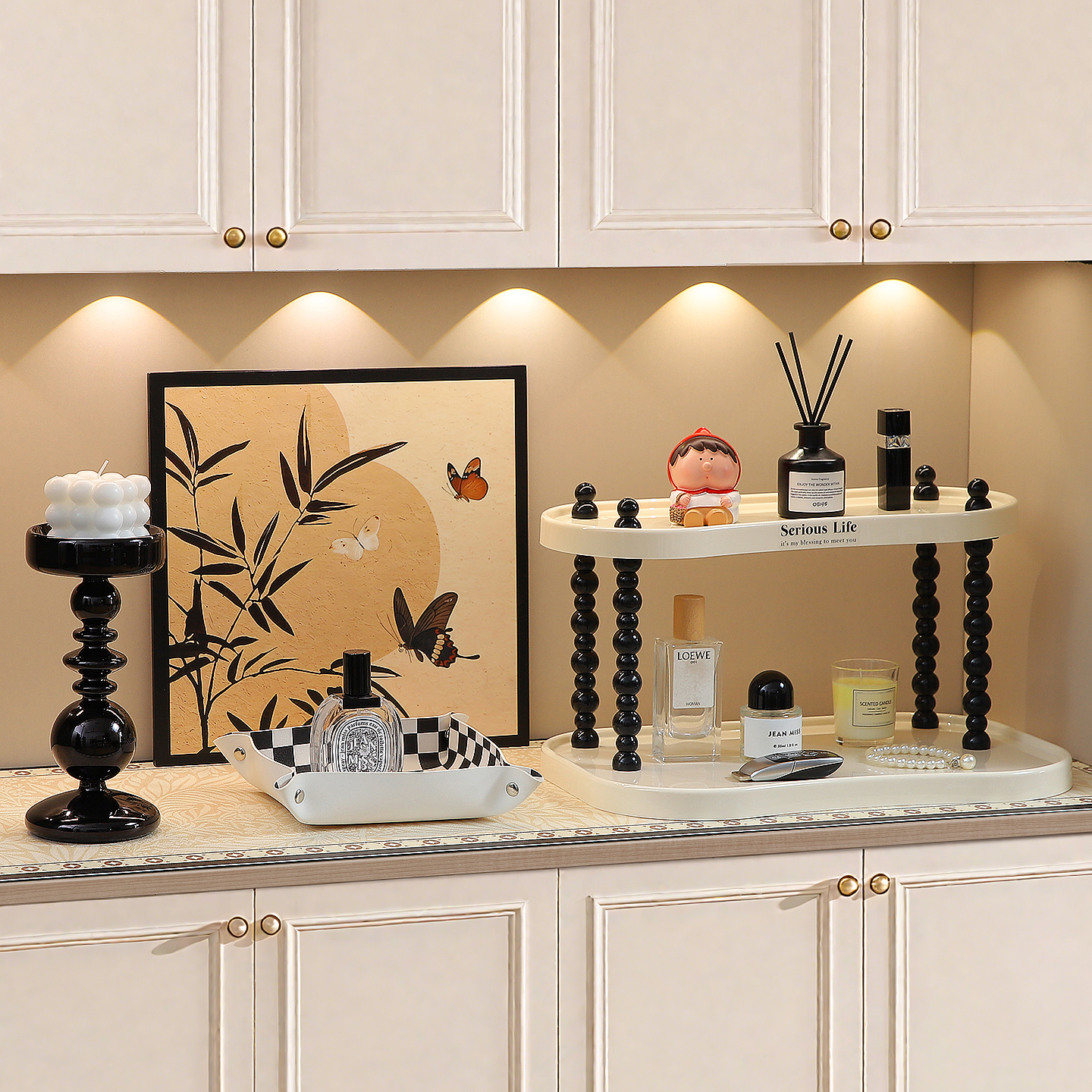 奶油风钥匙收纳入户玄关装饰摆件桌面多层置物架客厅餐边柜装饰品