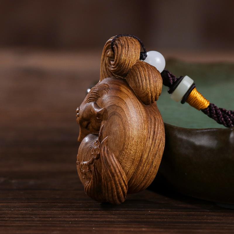 四川小叶桢楠金丝楠木实木雕刻九尾魅狐狸随身把玩手把件汽车挂件