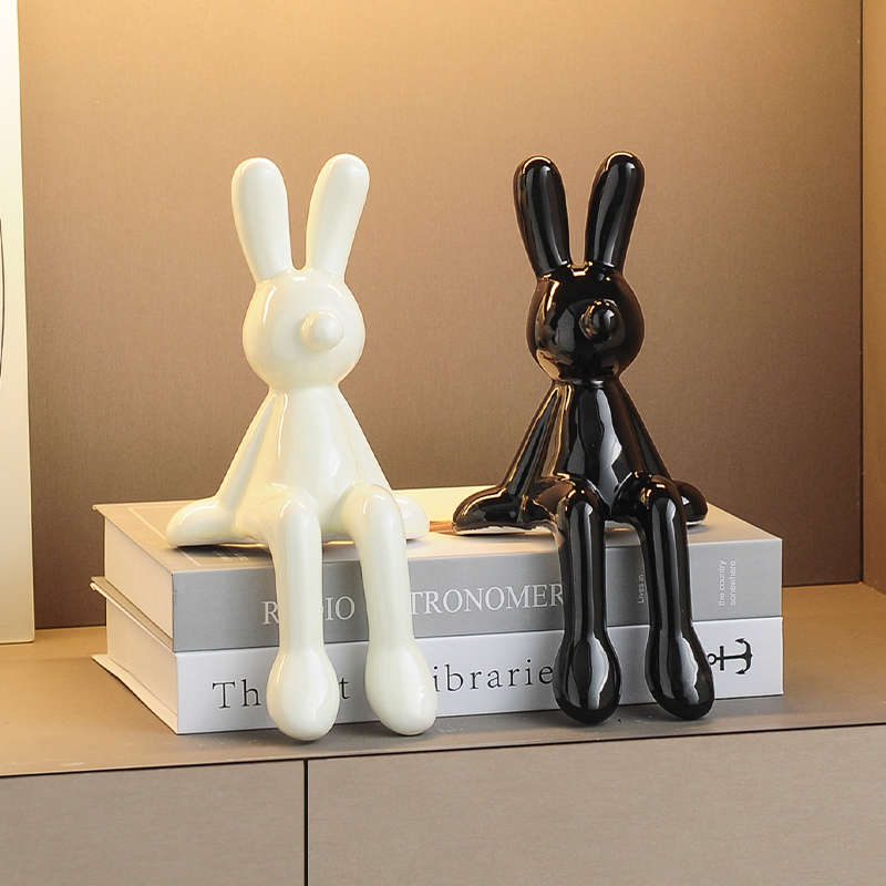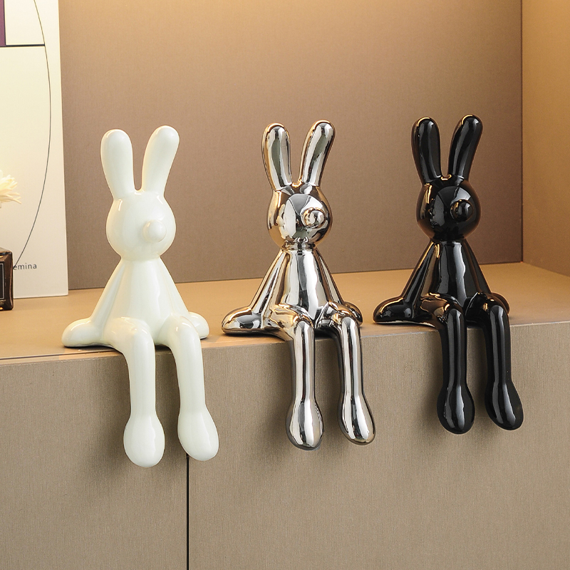 网红创意坐姿长耳兔子摆件高档轻奢客厅电视柜酒柜玄关家居装饰品
