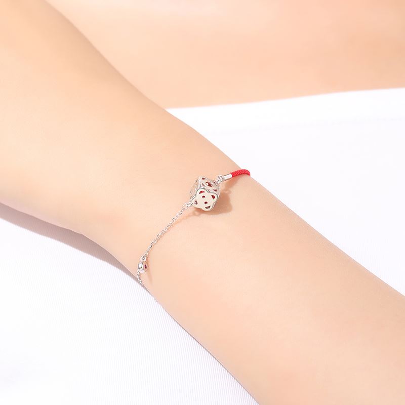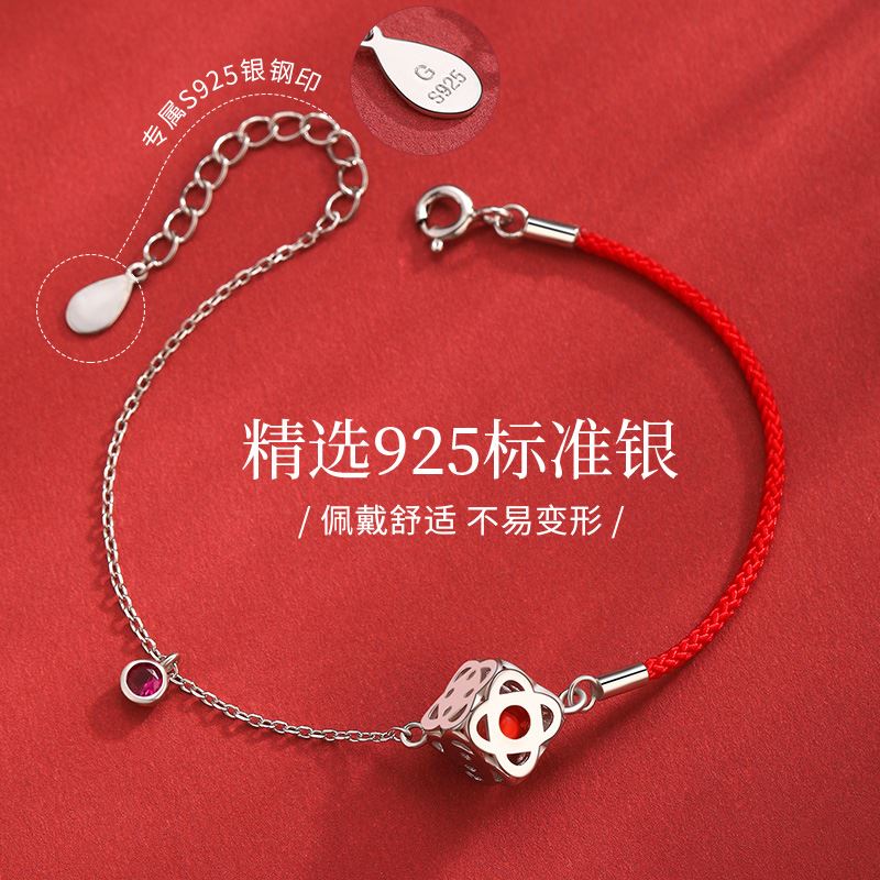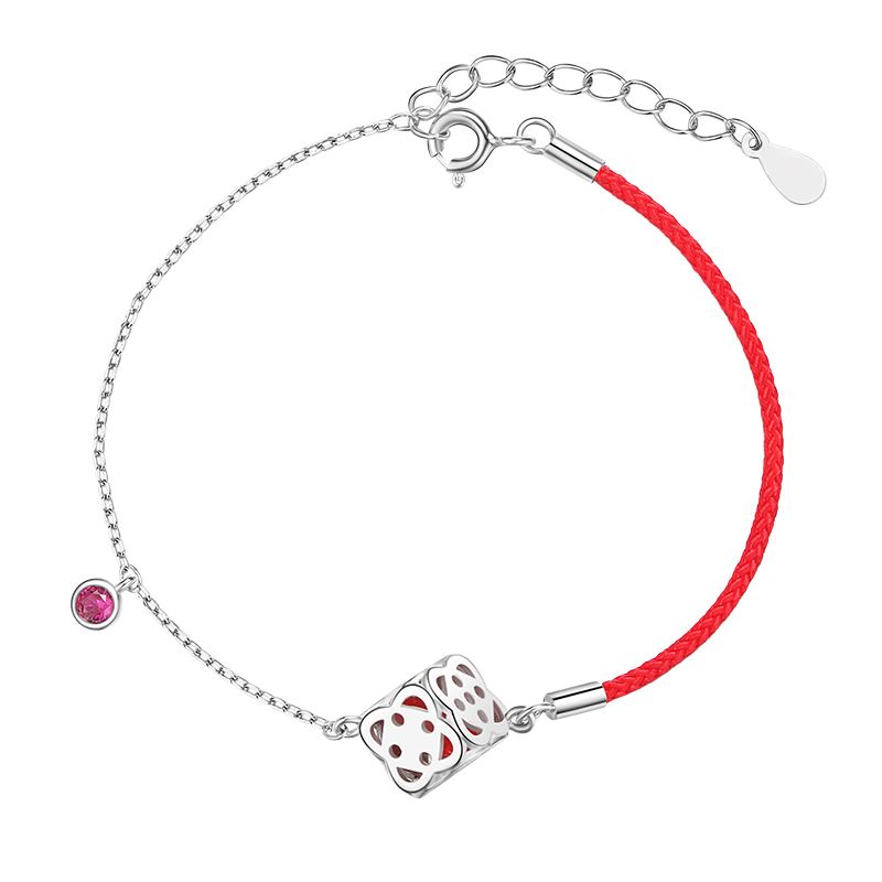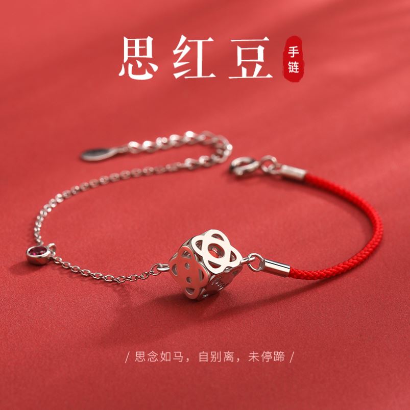 玲珑骰子安红豆纯银手链女ins小众设计红绳闺蜜编织手绳送女友