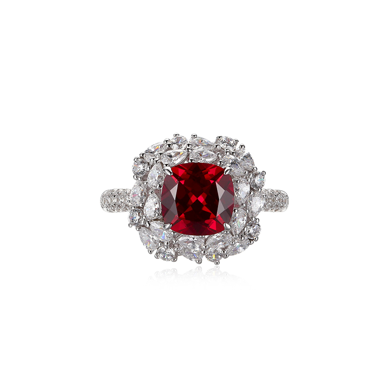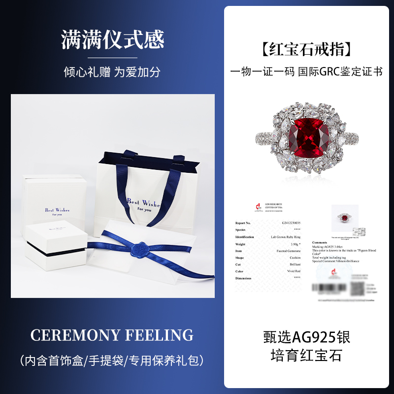 KUDE'S库迪家3.0克拉培育红蓝宝石戒指女925银老钱风钻戒高级感